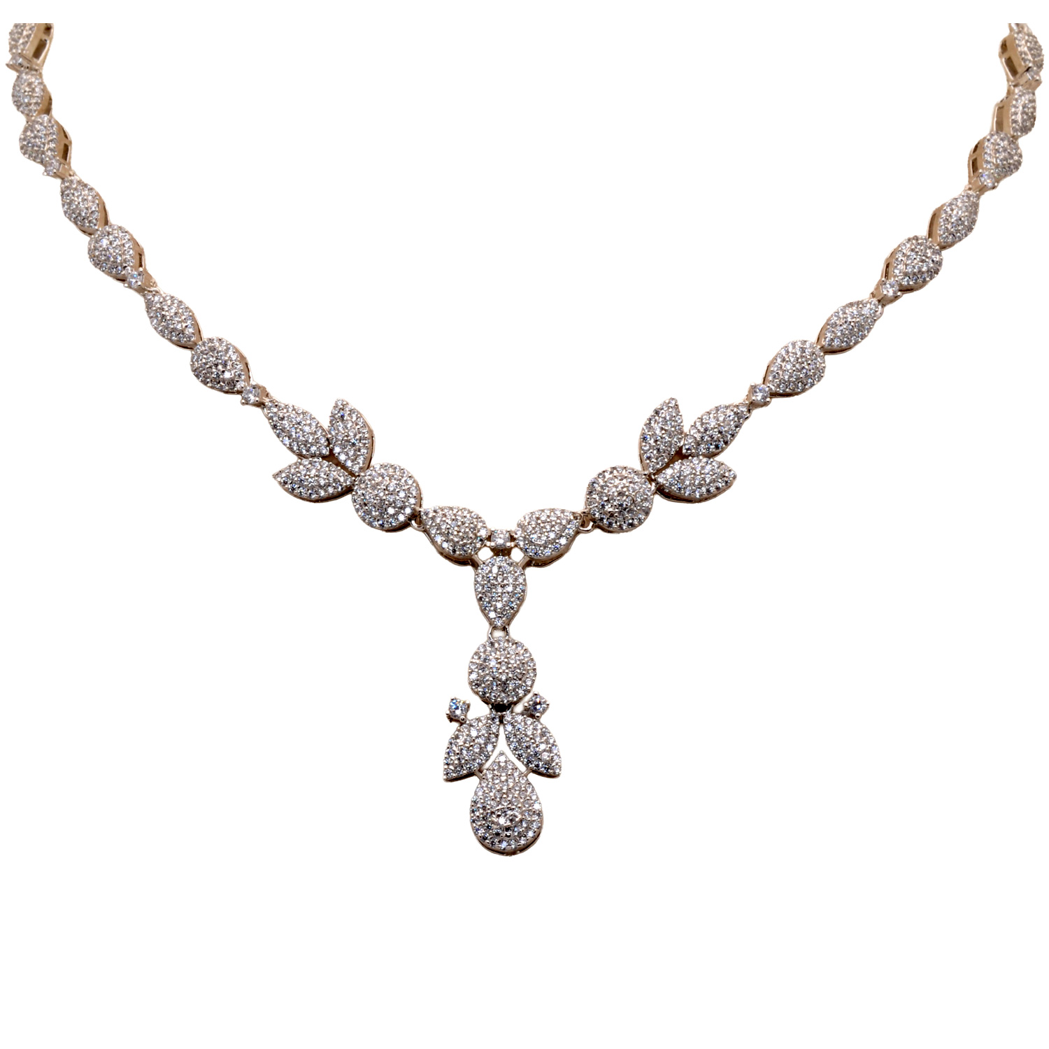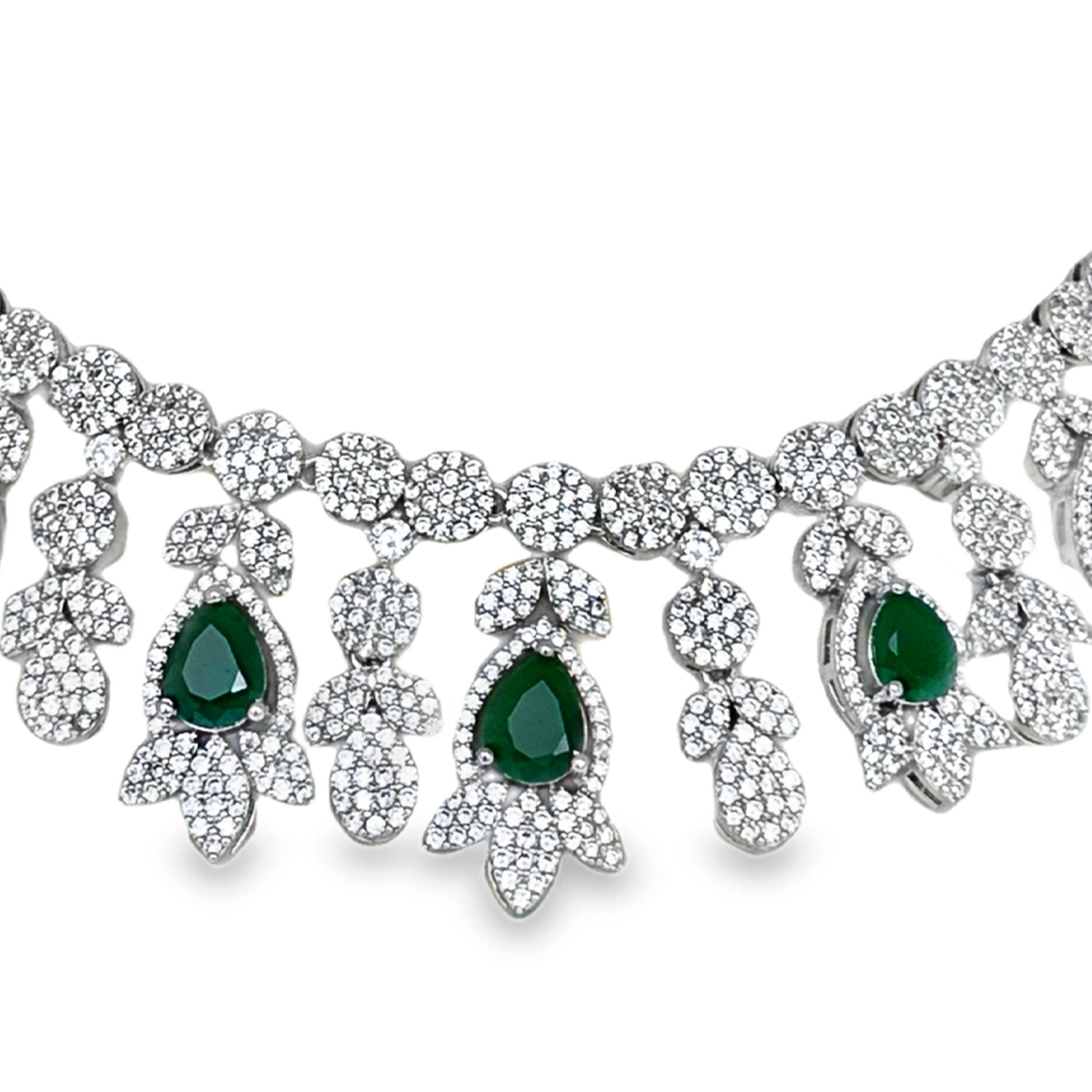 Cubic Zirconia & Pear Emerald Studded Necklace & Earring Set