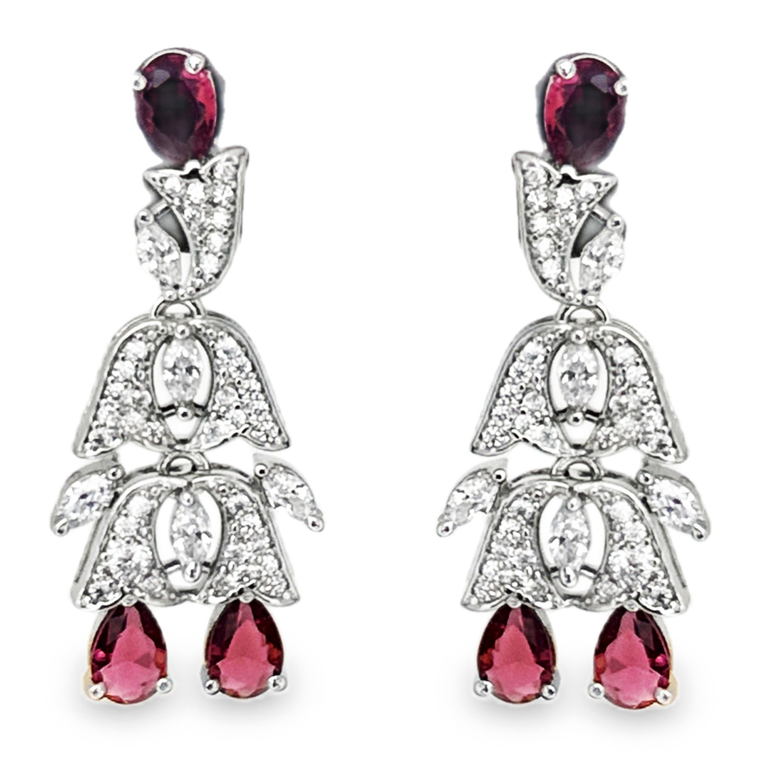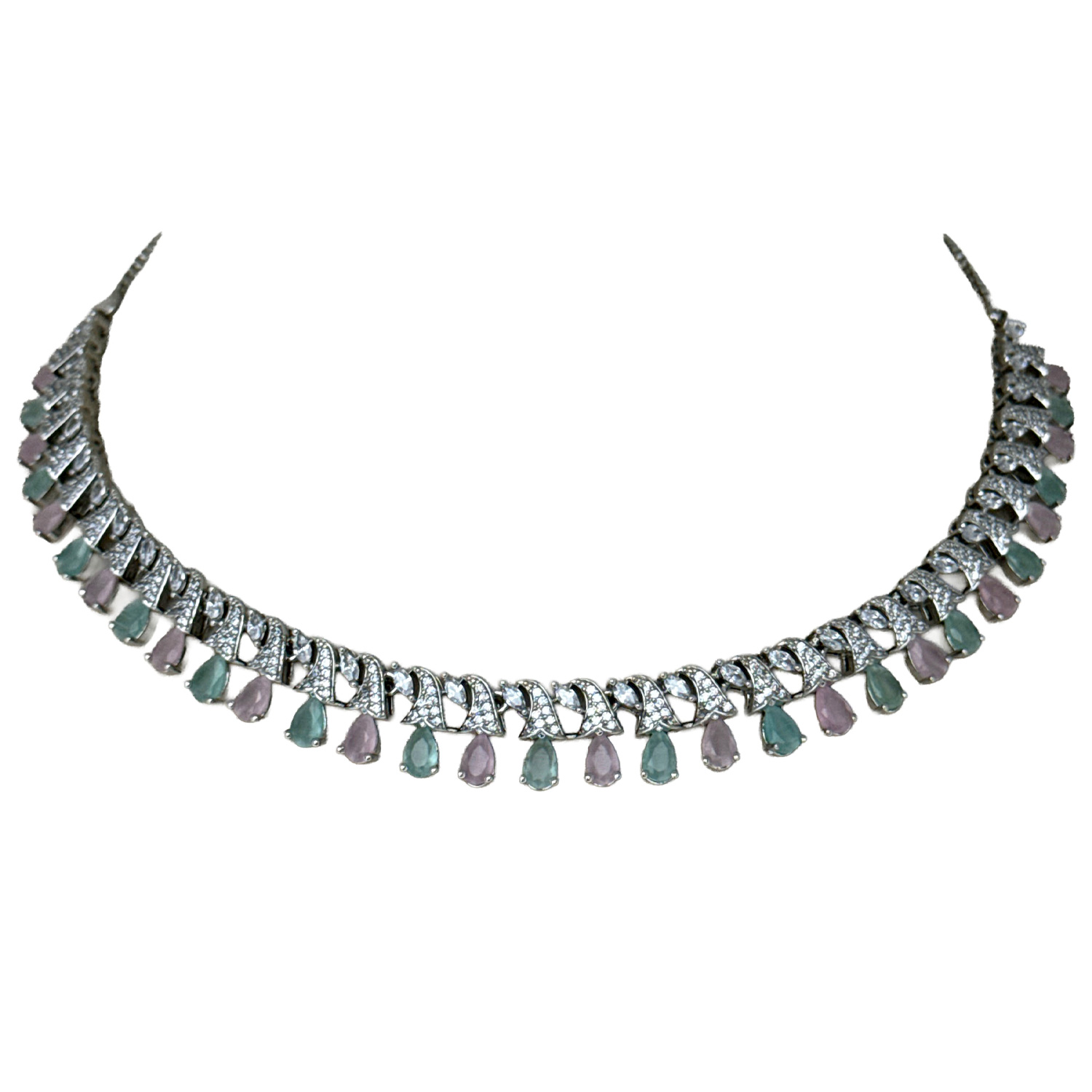 Cubic Zirconia & Pink Tourmaline Color Stone Studded Necklace Set