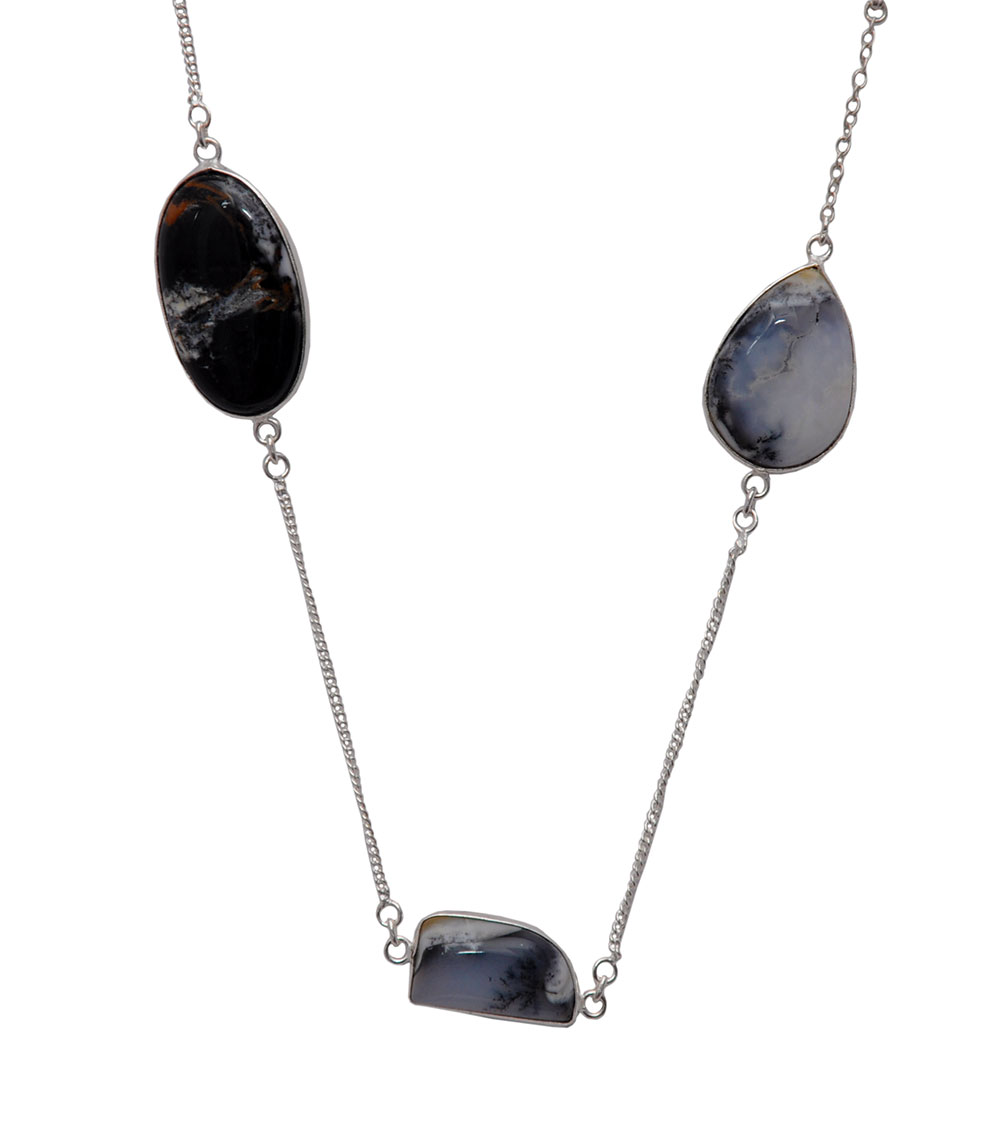 Dendritic Agate gemstone Chain In .925 Sterling Silver Overlay