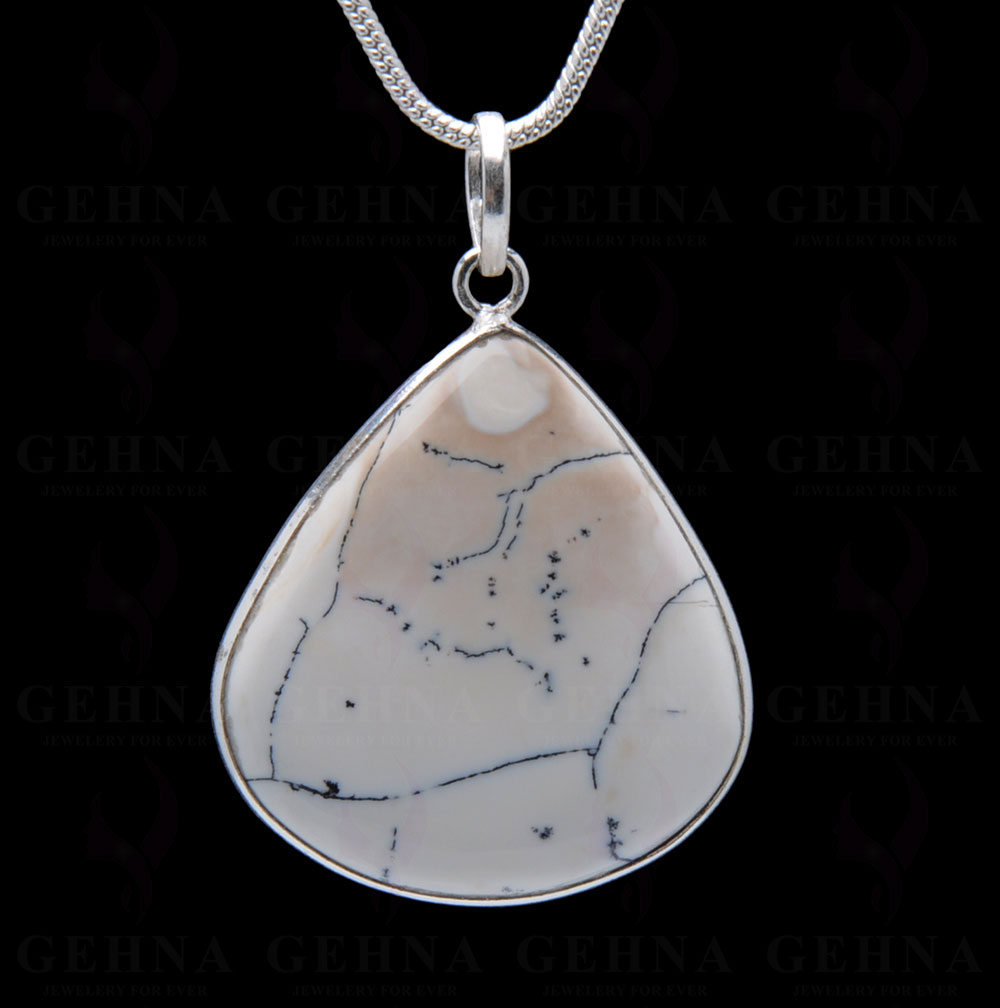 Gehna Jaipur Dendritic Agate gemstone studded pendant crafted in .925 silver overlay metal. Nature-inspired inclusions give each piece a distinctive artistic character.