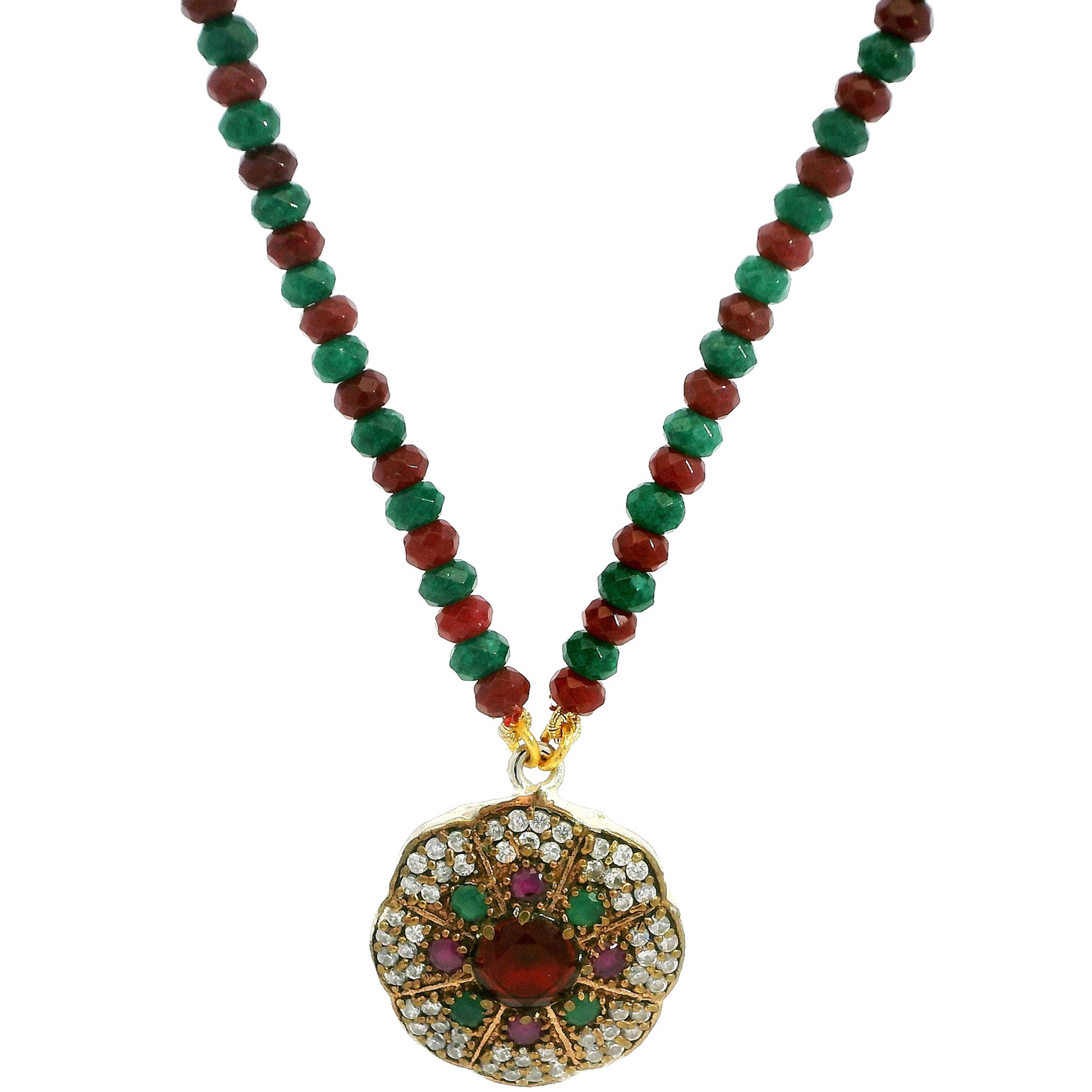 Emerald & Ruby Gemstone Bead Necklace With Silver Pendant & Earring Np1376