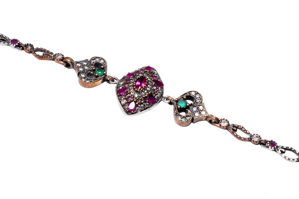 EMERALD RUBY TOPAZ GEMSTONE STUDDED SILVER BRACELET