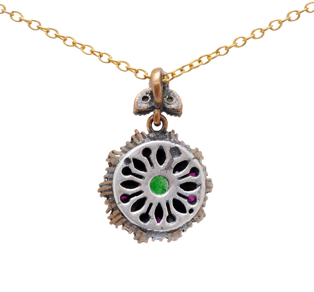 EMERALD RUBY & TOPAZ GEMSTONE STUDDED SILVER PENDANT