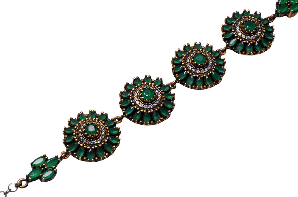 EMERALD & WHITE TOPAZ GEMSTONE STUDDED SILVER BRACELET