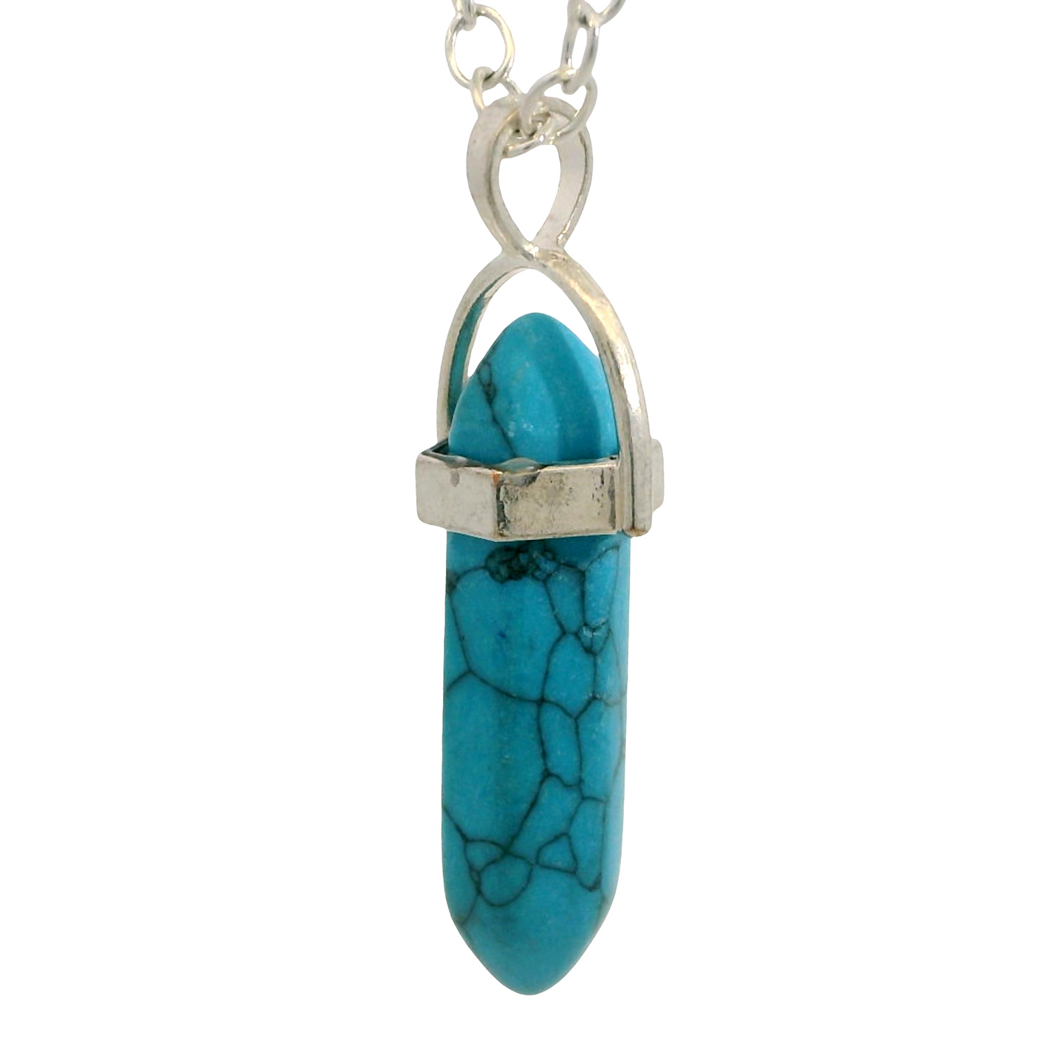 Gehna Jaipur firoza (turquoise) pencil pendant silver plated for protection and positivity. Featuring vibrant natural color and sleek design, this pendant adds spiritual meaning and refreshing charm to daily wear.