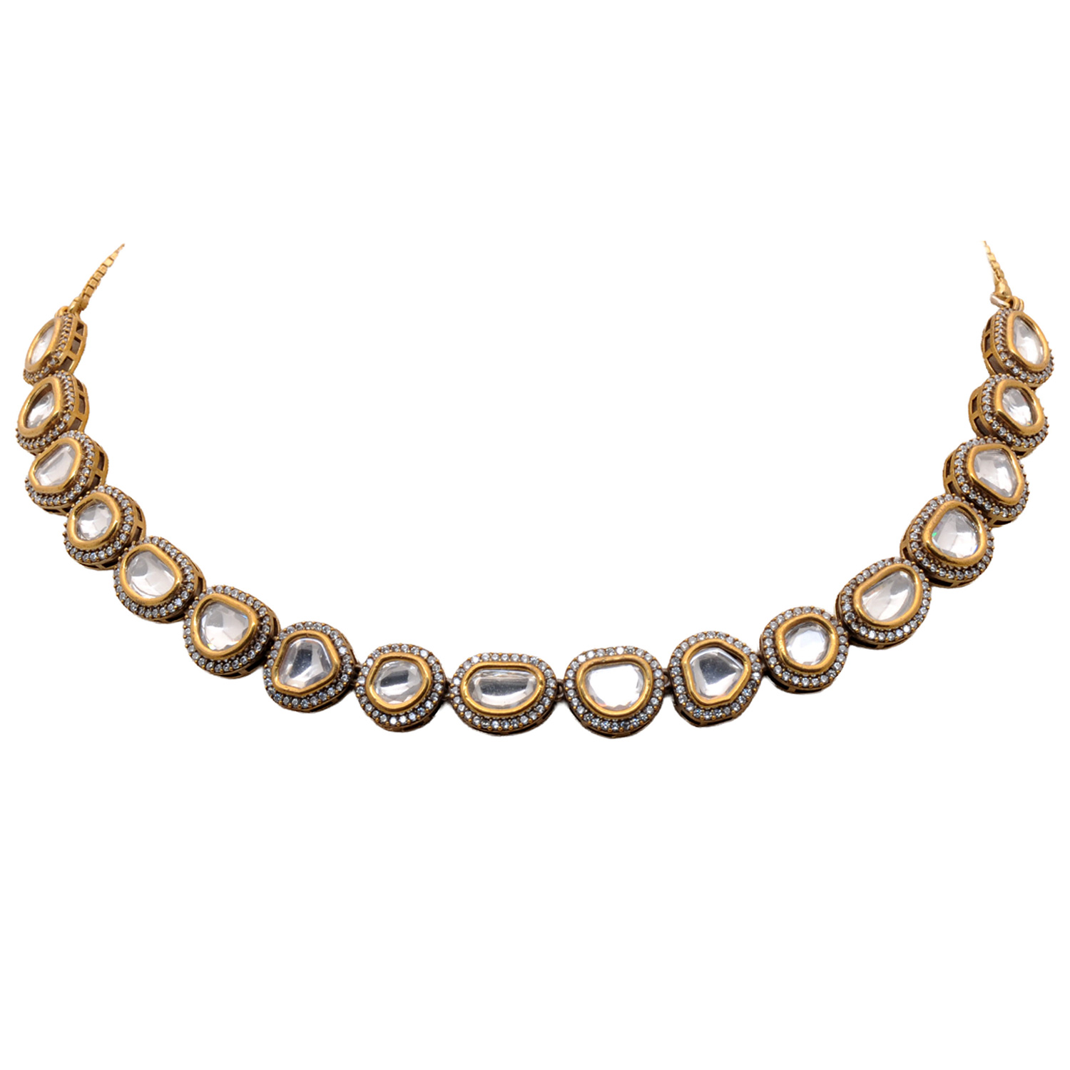 Gehna Jaipur’s floral theme cubic zirconia and rubelite color stone studded necklace set for girls and women. The delicate floral design accented with rubelite stones and sparkling cubic zirconia brings elegance and charm, perfect for adding a touch of grace to any celebration or formal event.