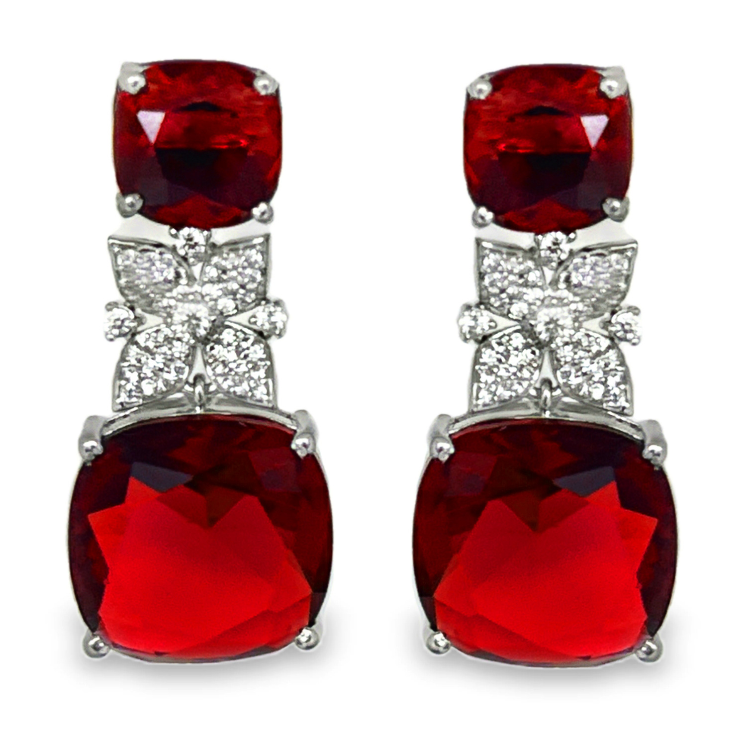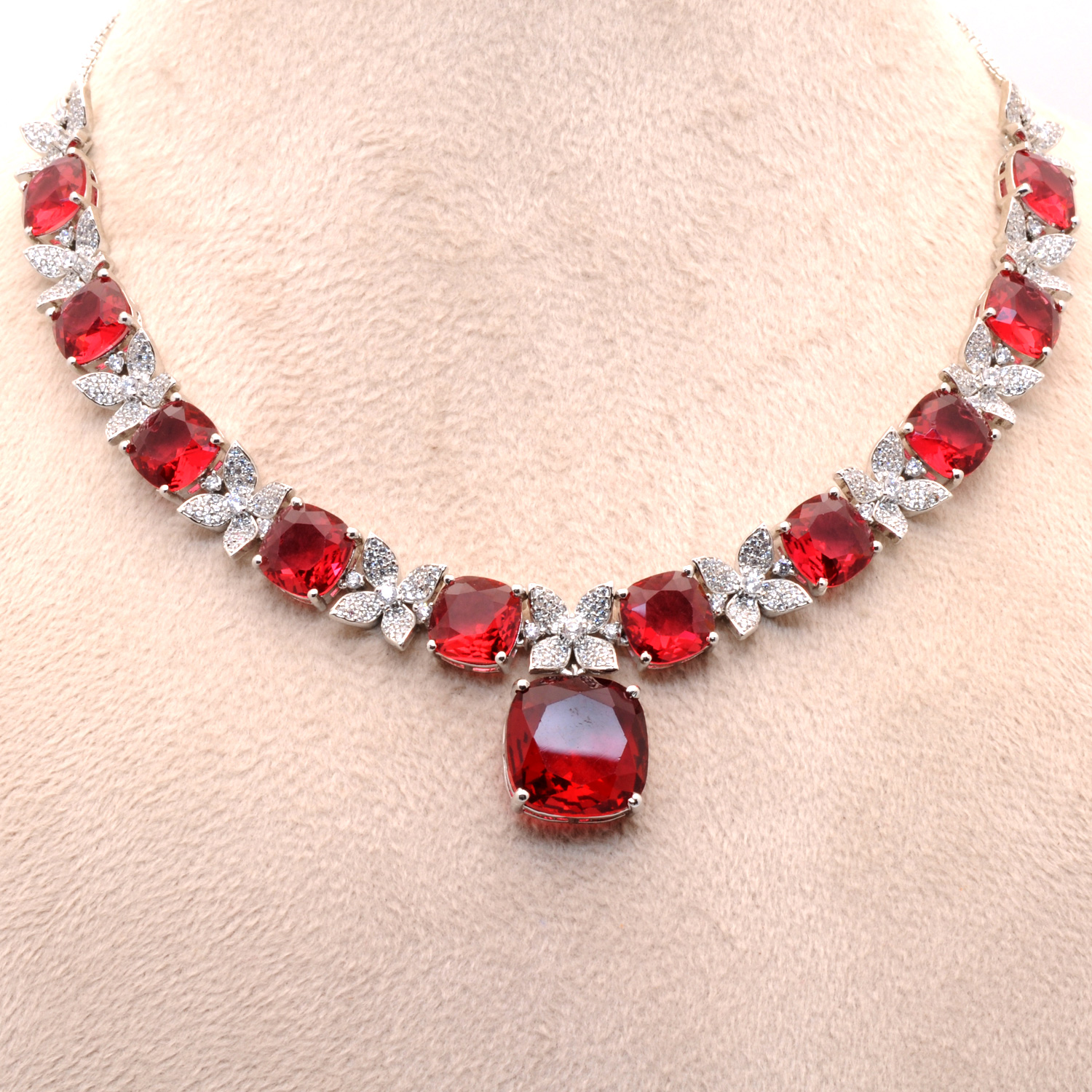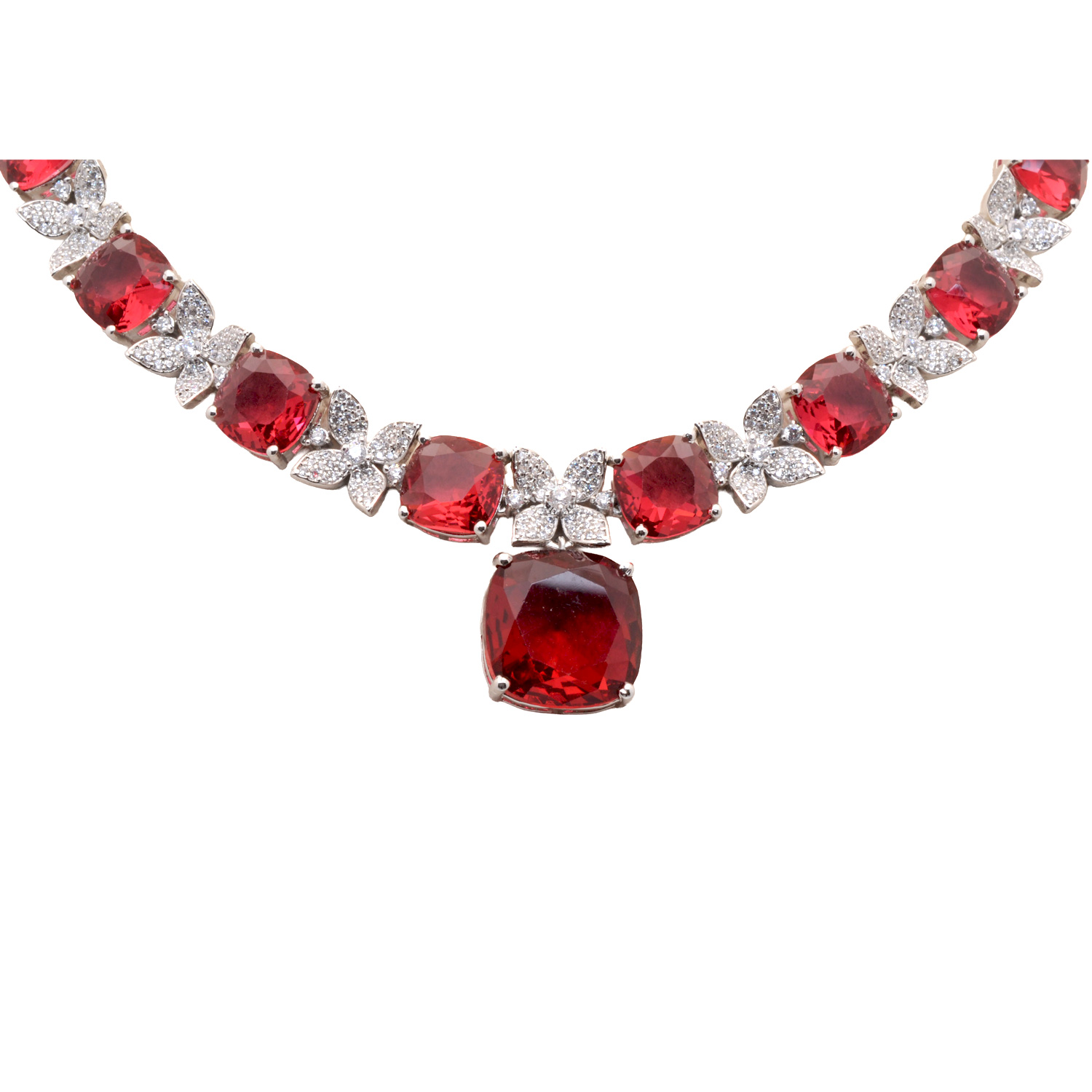Floral Theme Cubic Zirconia & Rubelite Color Stone Studded Necklace Set