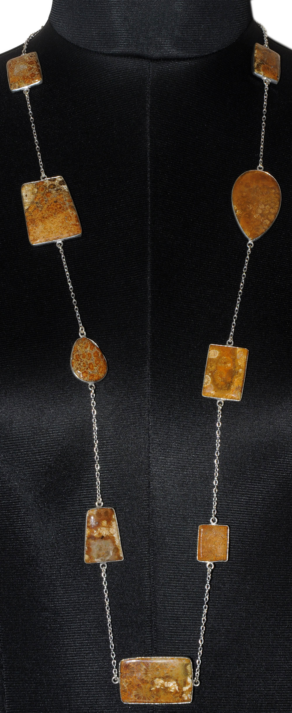 Fossil Coral Gemstone Studded Chain In . Sterling Silver Overlay