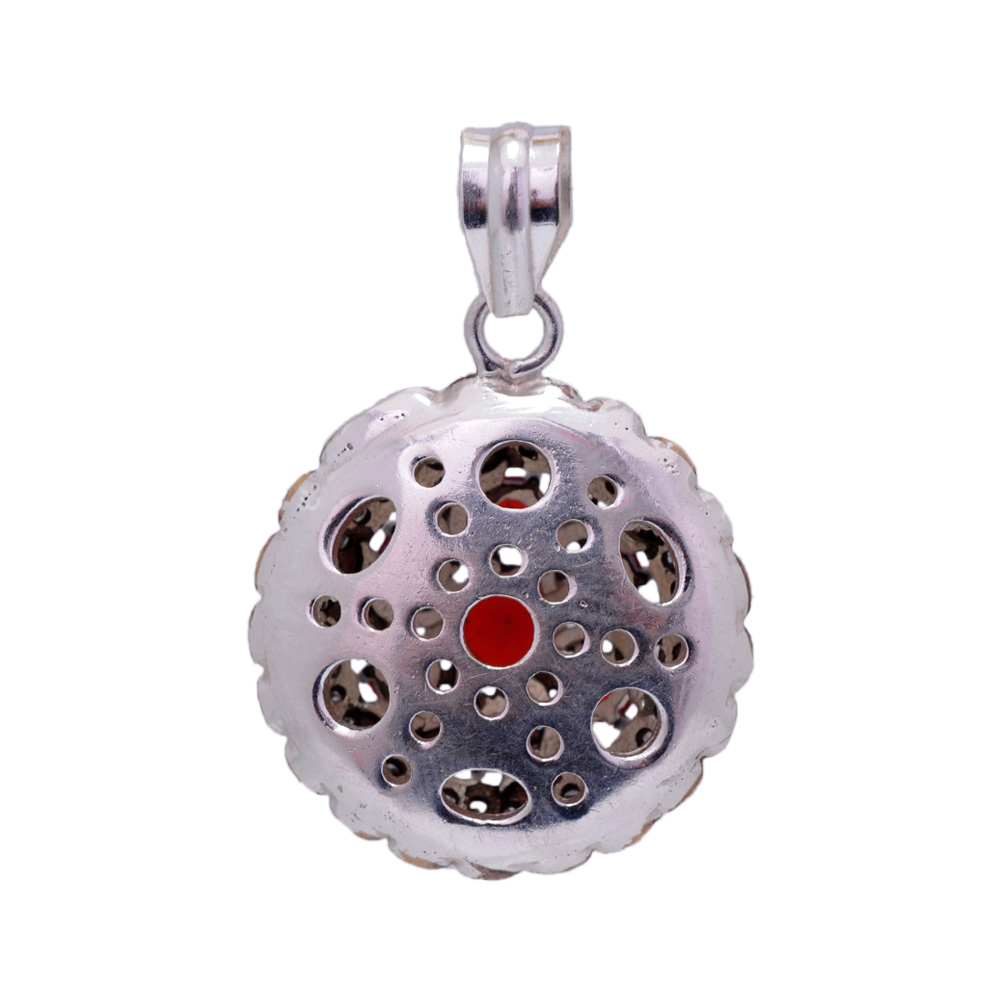 Elegant Gehna Jaipur Garnet pendant, set in 925 Sterling Silver overlay. Featuring deep red hues, this pendant is perfect for adding a bold yet graceful statement to your jewelry collection.