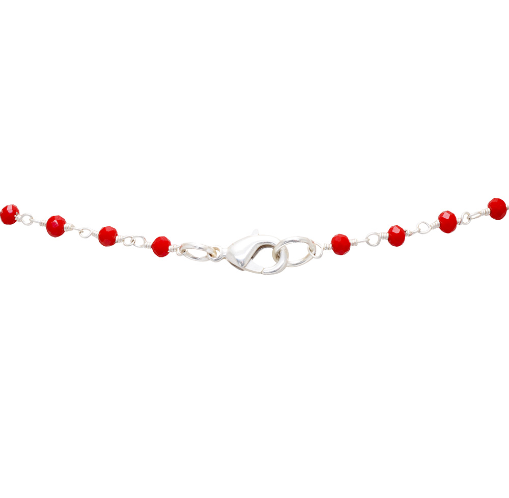 Gehna Jaipur 18″ Inches Red Color Zirconia Faceted Beads Rosary Chain For Girls & Women CC-1102