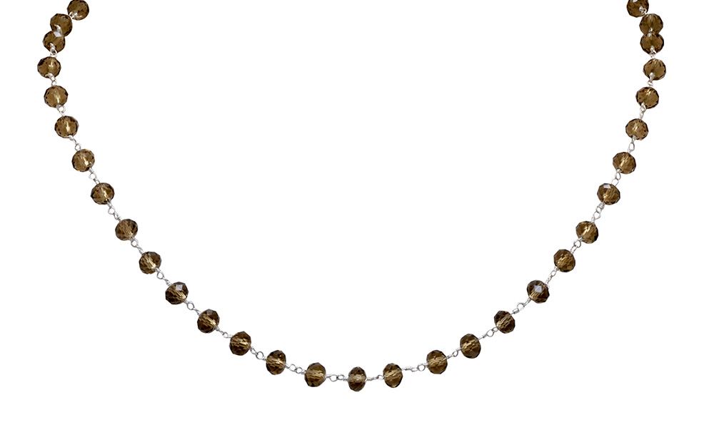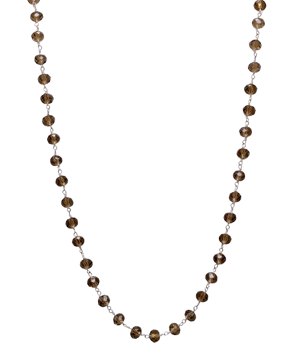 Gehna Jaipur 18″ Inches Smokey Color Zirconia Faceted Beads Silver Rhodium Plating For Girls & Women CC-1003