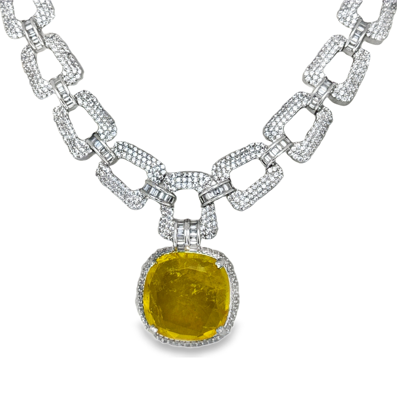 20″ C.Z & Yellow Sapphire Octagon Shape Stone Studded Necklace & Earring