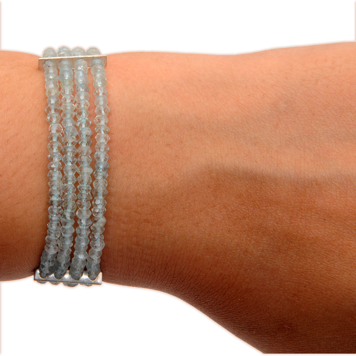 Gehna Jaipur 4 Rows Aquamarine Gemstone Round Shape Faceted Bead Bracelet For Girls & Women BS-1118