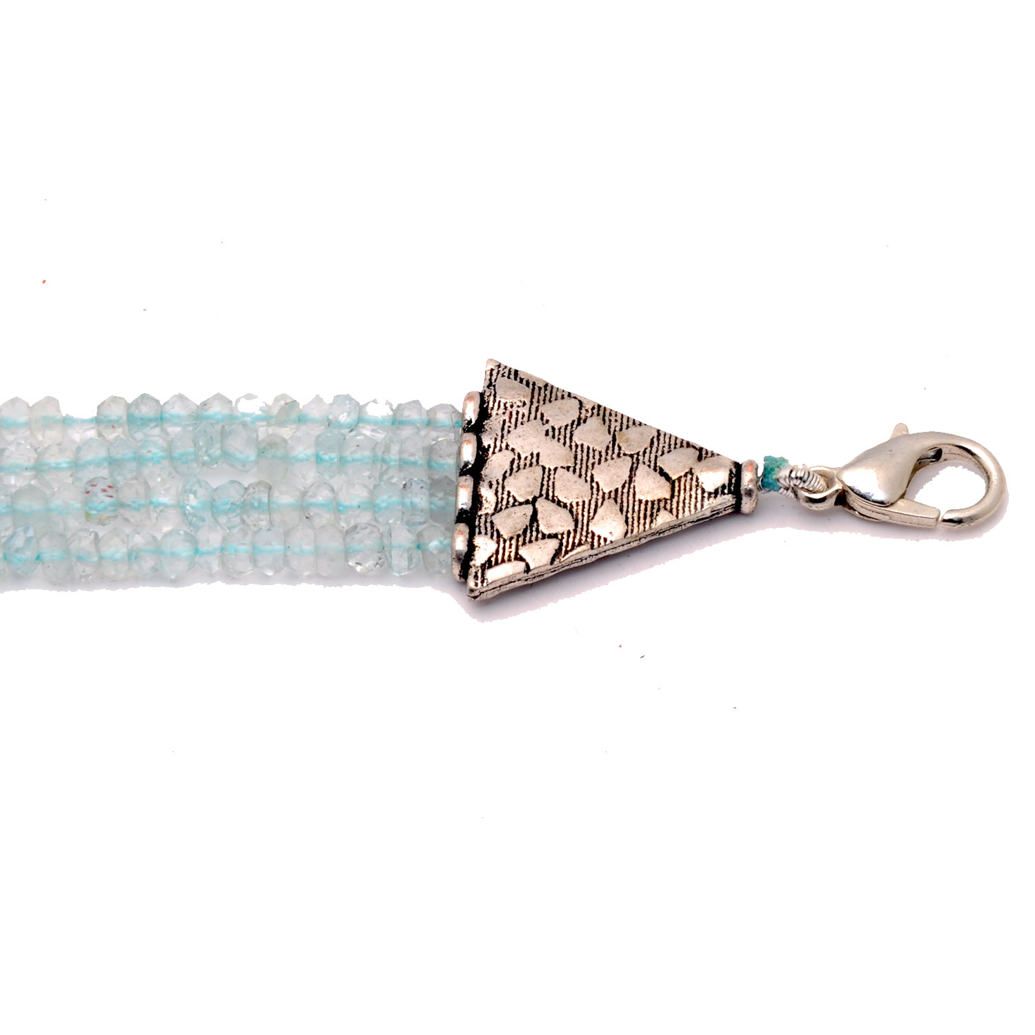 Gehna Jaipur 4-row aquamarine round faceted bead bracelet captures the essence of ocean beauty. Its calming hues and refined layering make it perfect for girls and women who seek natural elegance.