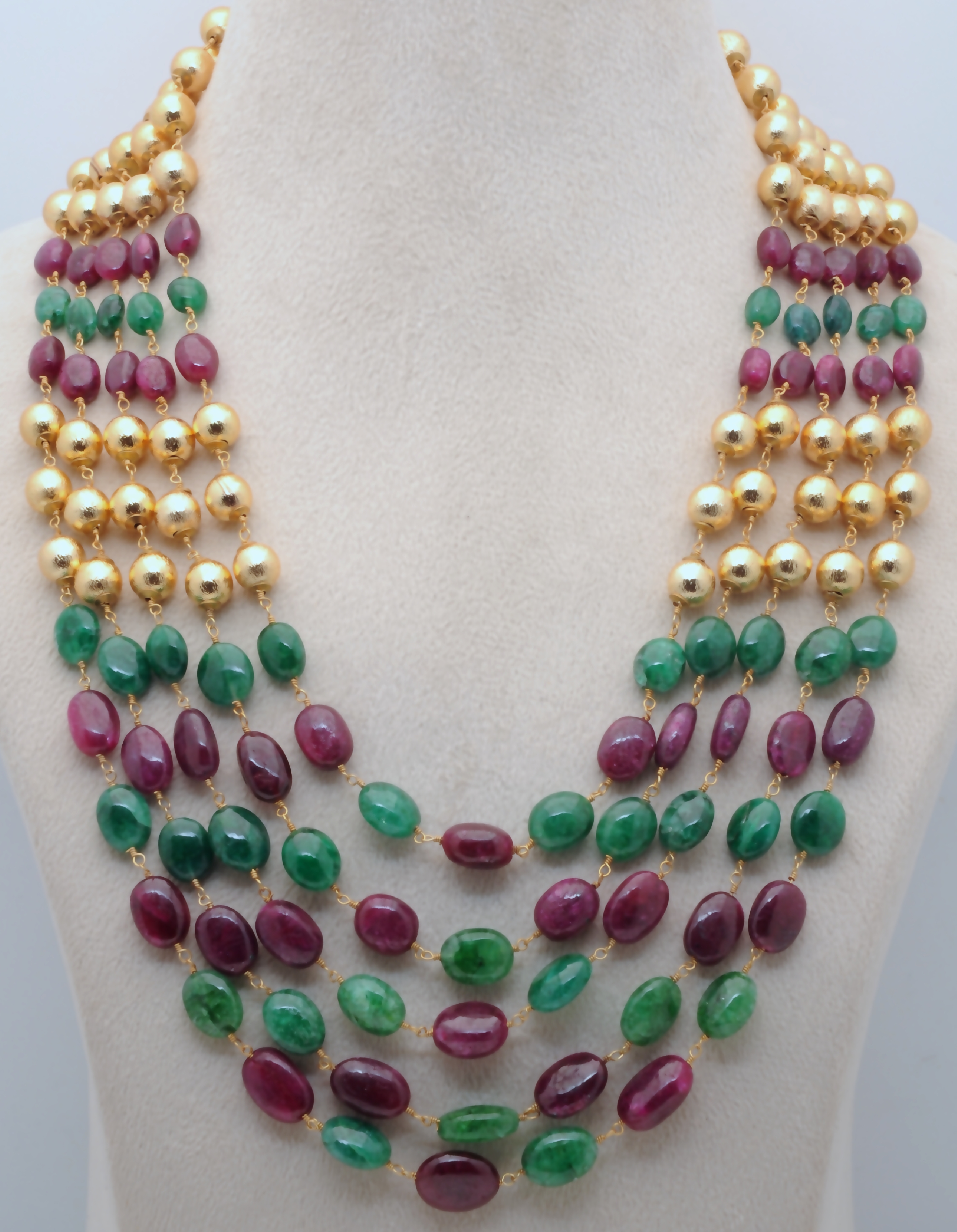Gehna Jaipur 5 Rows Of Emerald Ruby & Golden Balls Necklace & Earrings For Girls & Women CP-1083
