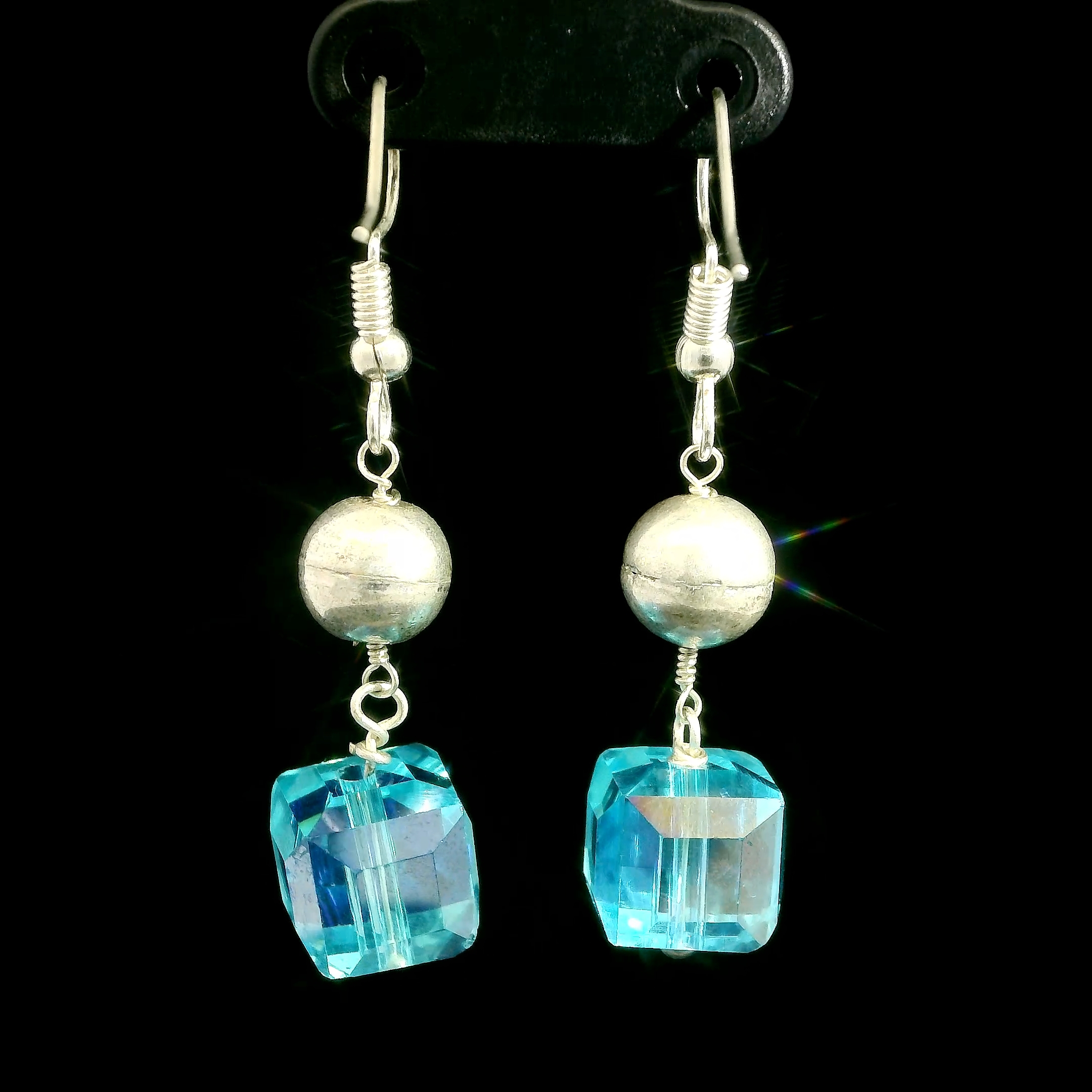 Gehna Jaipur Austrian Crystal Cube Drop Dangle Earrings Fashion Hypoallergenic Jewelry ( Blue Topaz ) For Girls & Women ES-1943