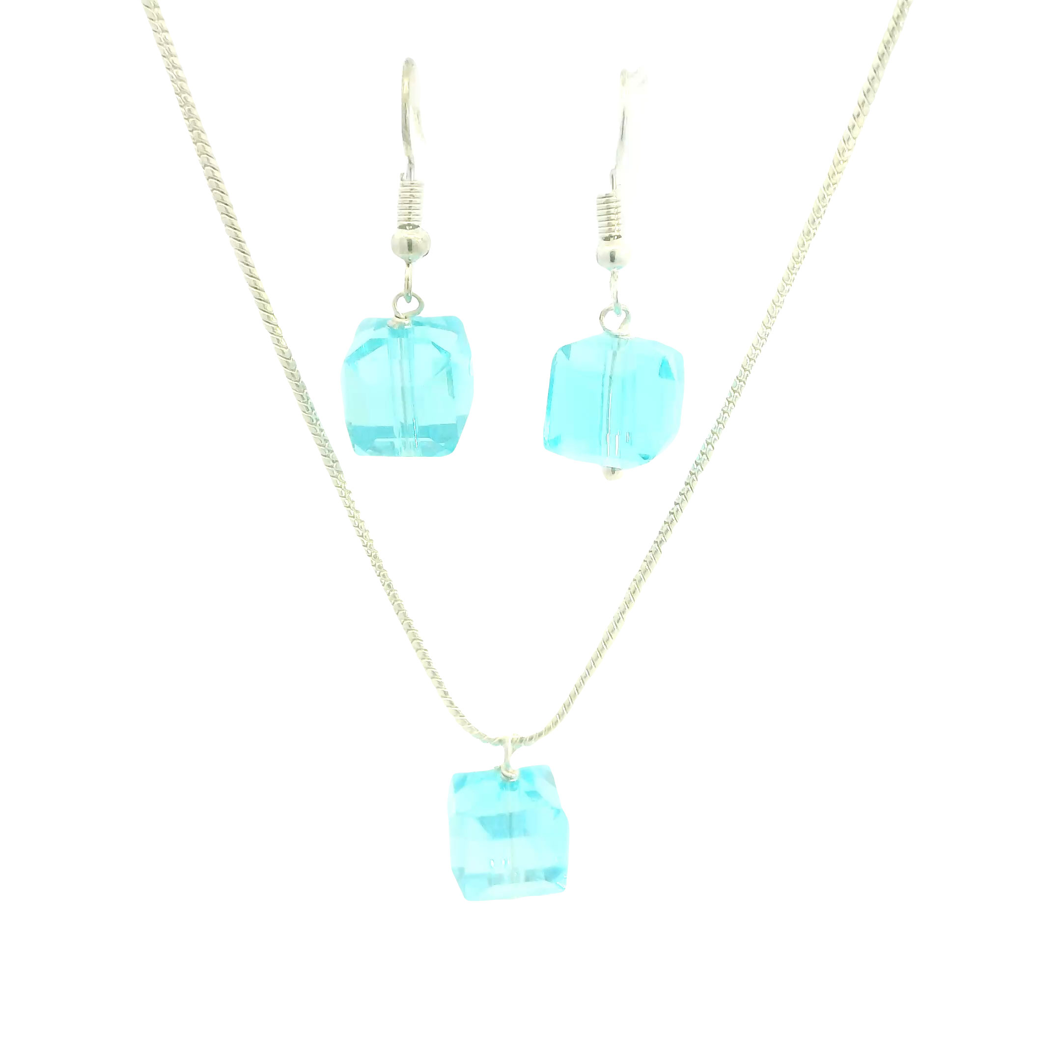 Gehna Jaipur Austrian Crystal Cube Pendant Set Fashion Hypoallergenic Jewelry ( Blue Topaz ) For Girls & Women NS-1822