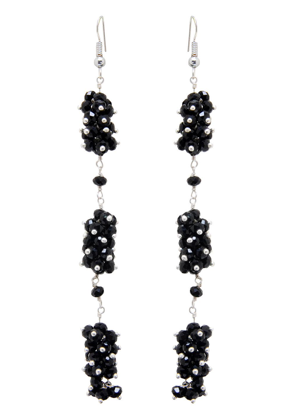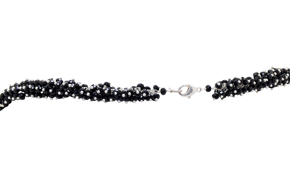 Gehna Jaipur Black Spinel Color Zirconia Beads Necklace Set Silver Rhodium Plating For Girls & Women CC-1053
