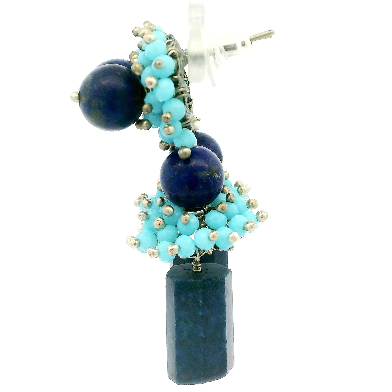 Gehna Jaipur Blue Chalcedny & Lapis Lazuli Gemstone Earrings Made In .925 Sterling Silver For Girls & Women ES-1930