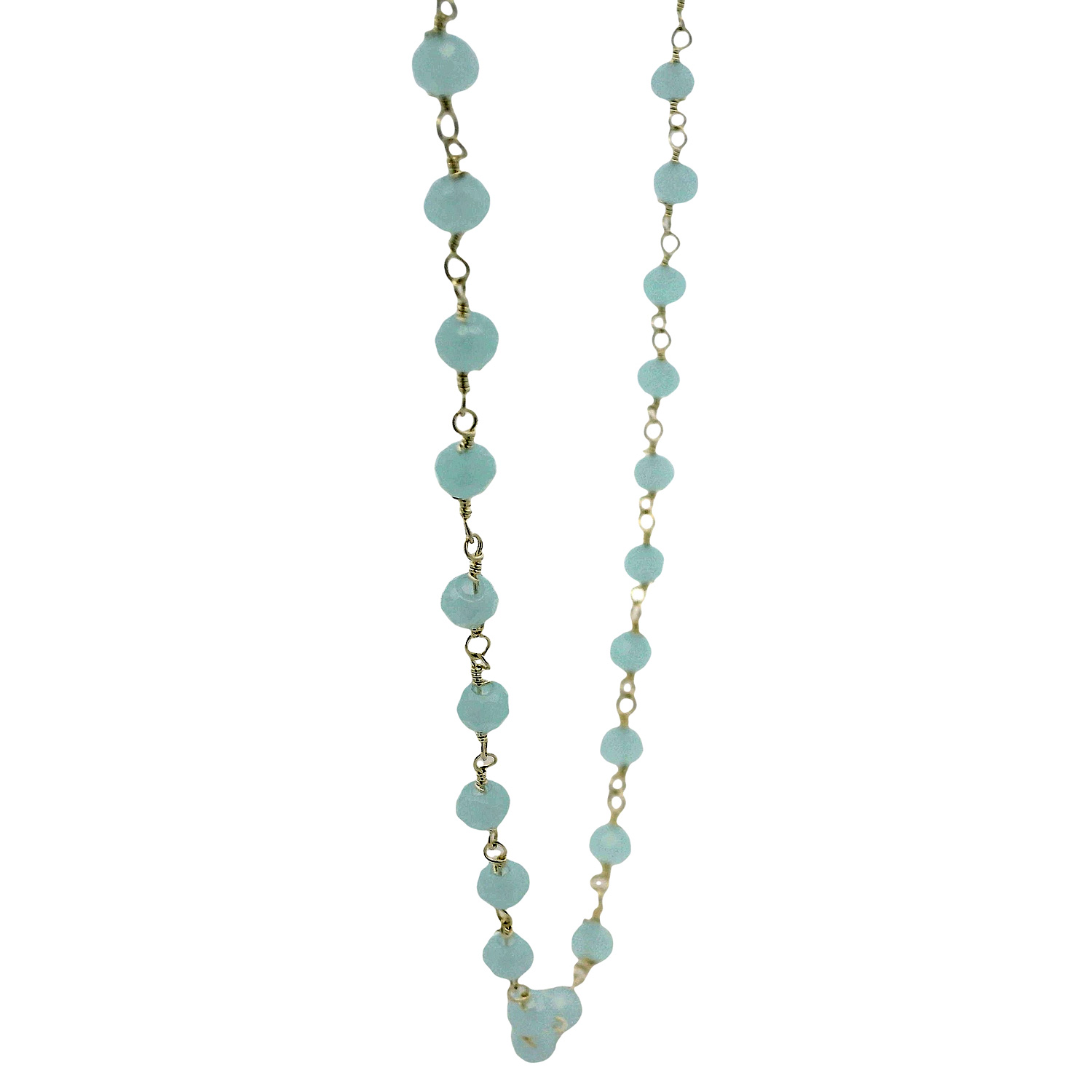 Radiating serenity, this Blue Chalcedony Color Cubic Zirconia Beads Necklace in silver by Gehna Jaipur adds calm elegance to your jewelry style.