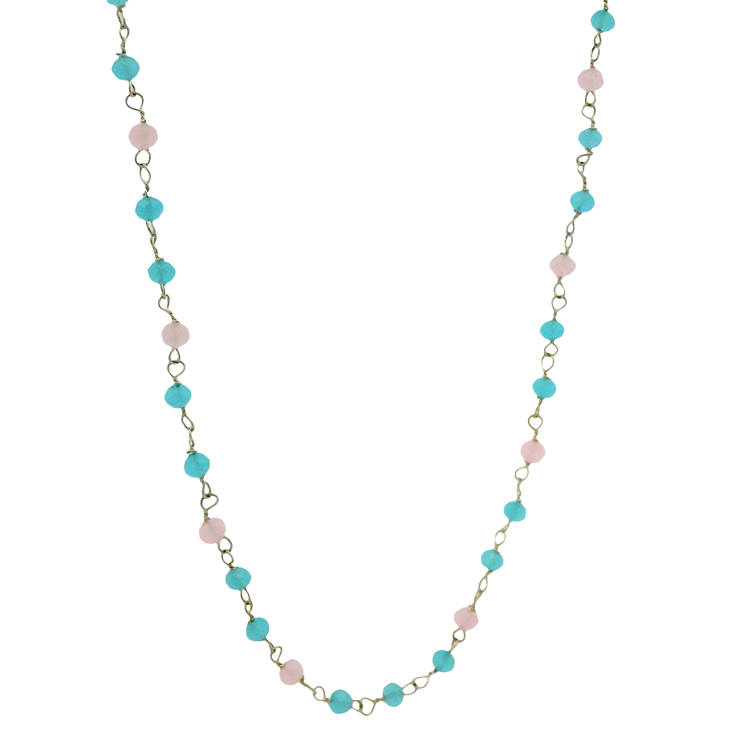 Gehna Jaipur Blue & Pink Chalcedony Cubic Zirconia Beads Necklace (Silver) showcases soft pastel elegance, blending cool blue and romantic pink for a charming statement.
