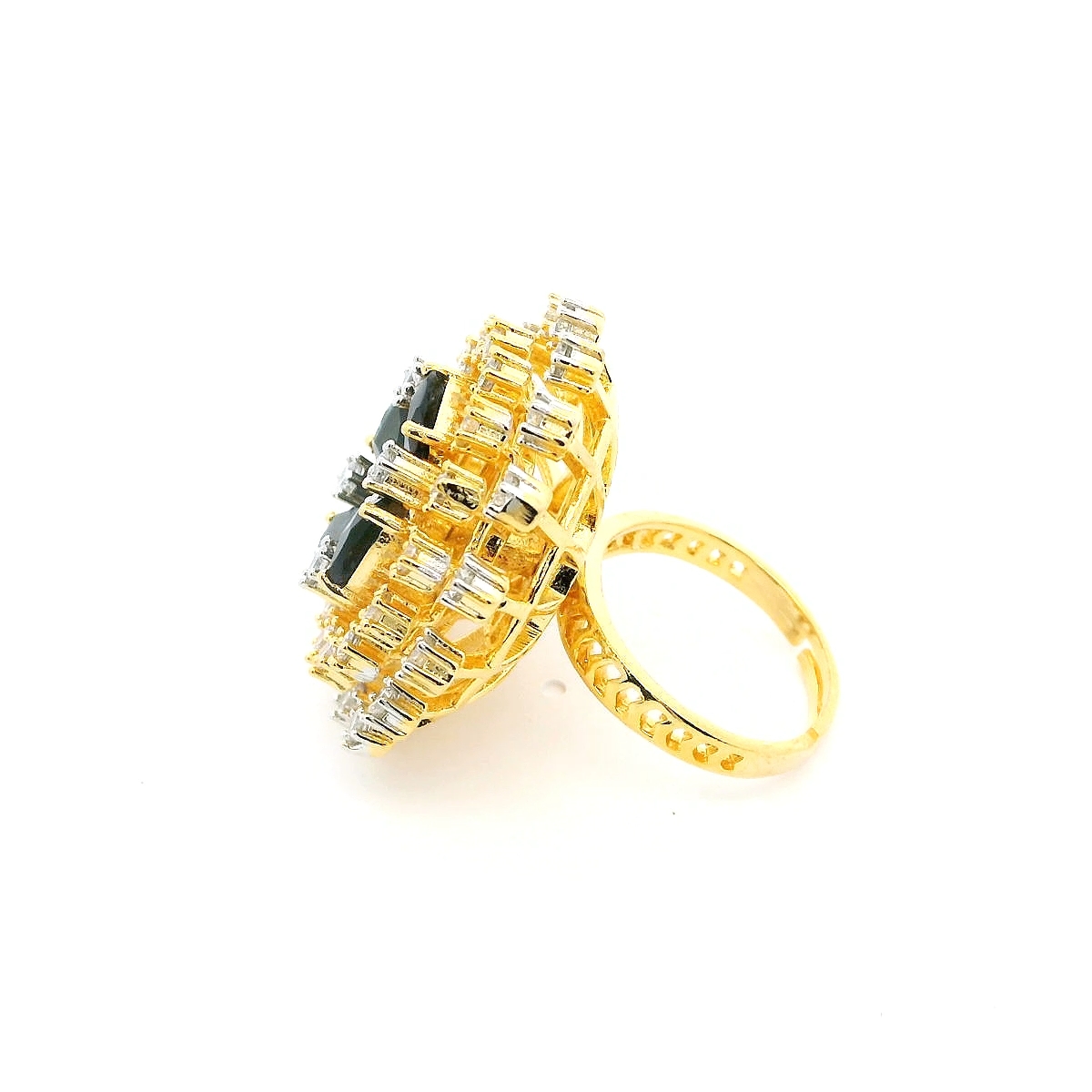 Gehna Jaipur Blue Sapphire Color Stone & Cubic Zirconia Studded Ring Adjustable Size For Girls & Women FR-1106