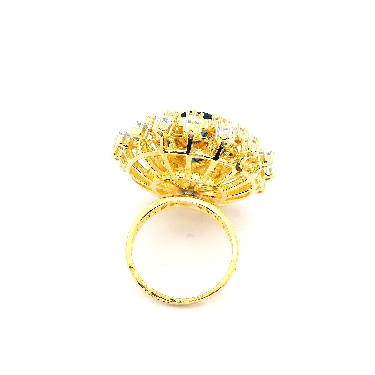 Gehna Jaipur Blue Sapphire Color Stone & Cubic Zirconia Studded Ring, Adjustable size. A radiant blue sapphire stone with sparkling cubic zirconia, perfect for girls and women who appreciate timeless elegance.