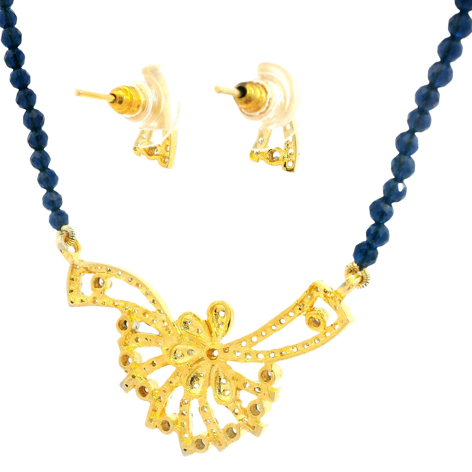 Gehna Jaipur Blue Sapphire Faceted Bead With Tanmaniya Pendant & Earring Set For Girls & Women FN-1100