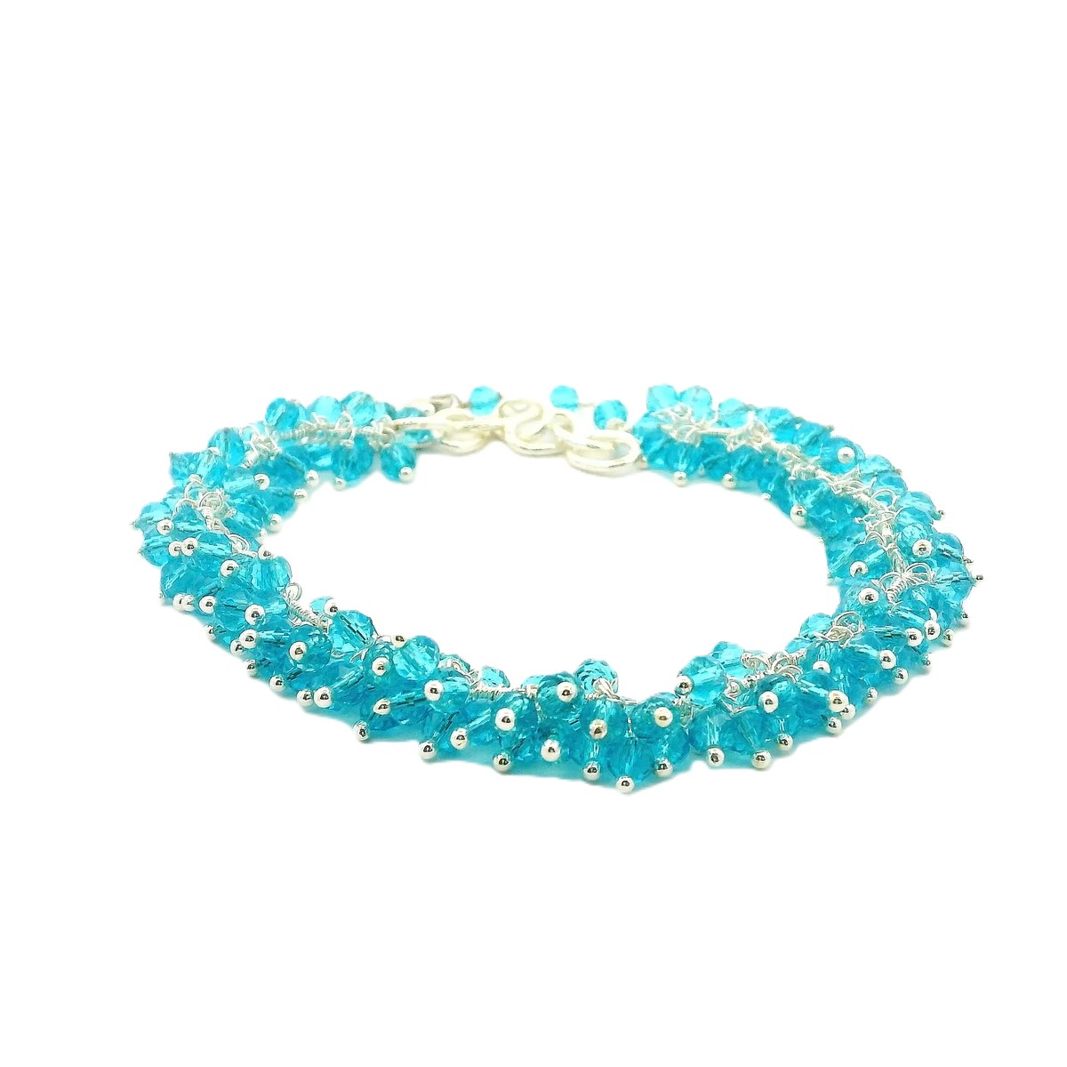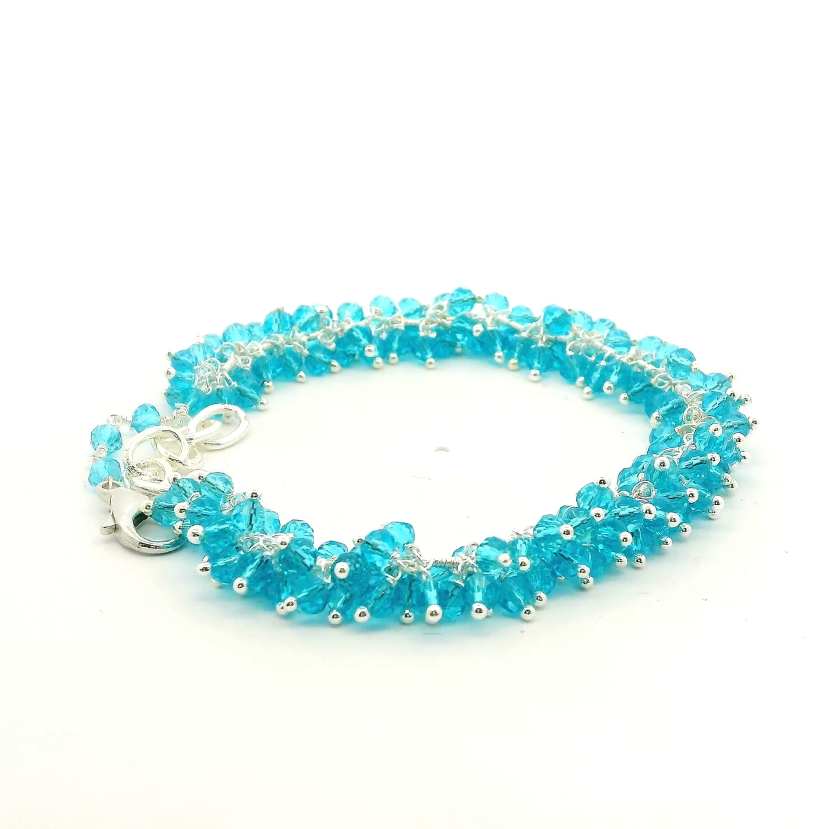 Gehna Jaipur Blue Topaz Zircon Beads Bracelet Made In Silver Polished Silver For Girls & Women CB-1052