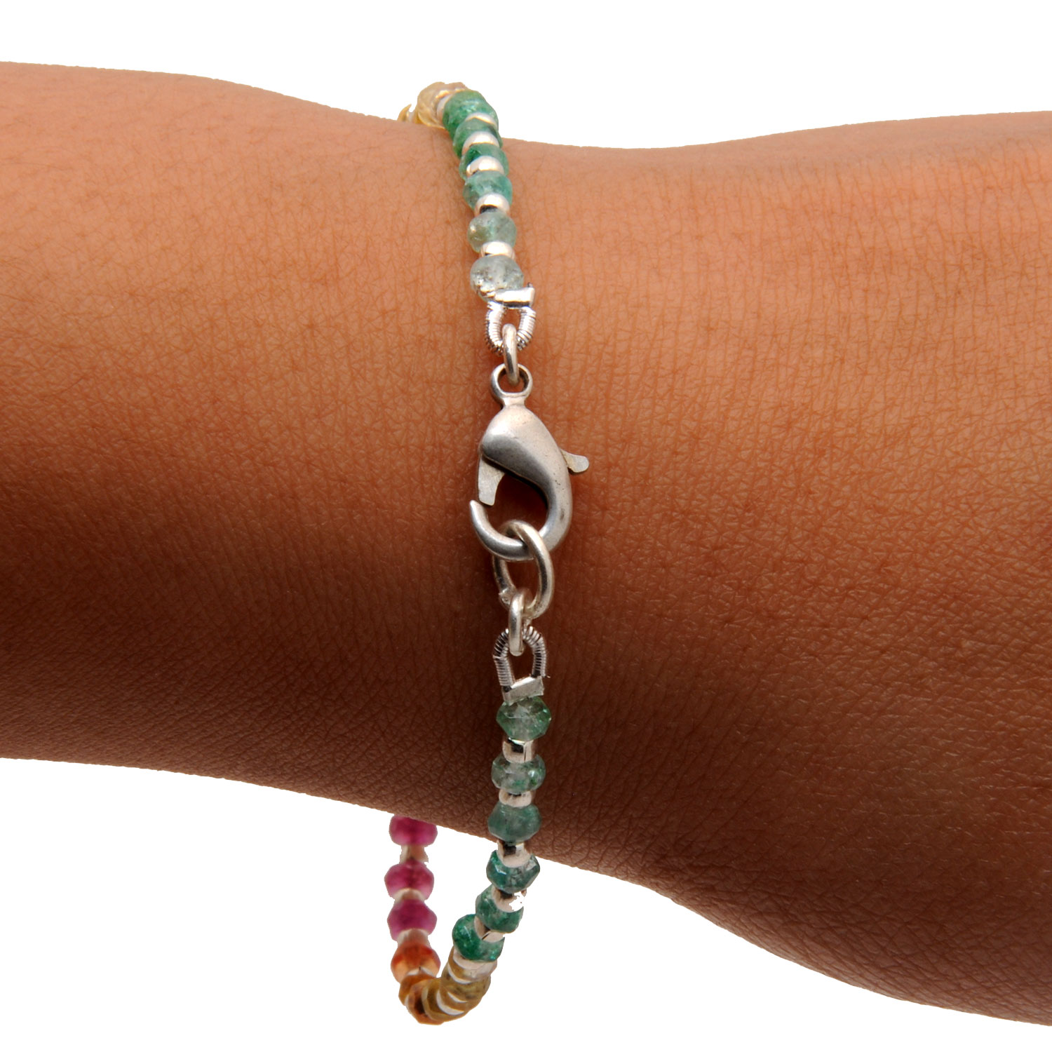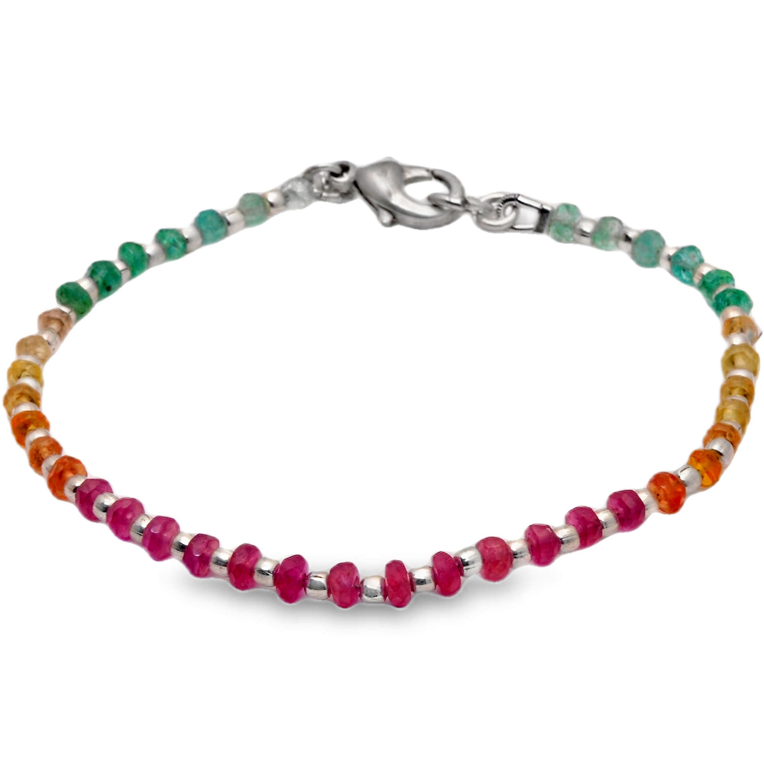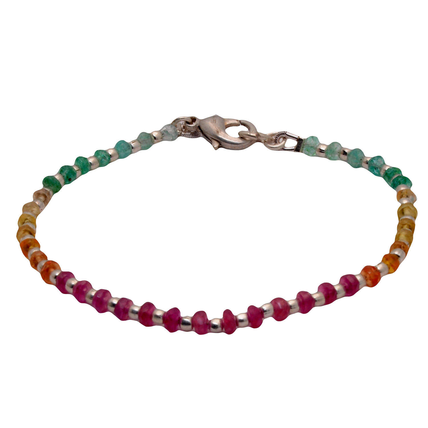 Gehna Jaipur Bracelet Of Emerald Ruby Sapphire Gemstone Beads With 925 Silver Elements For Girls & Women BS-1112