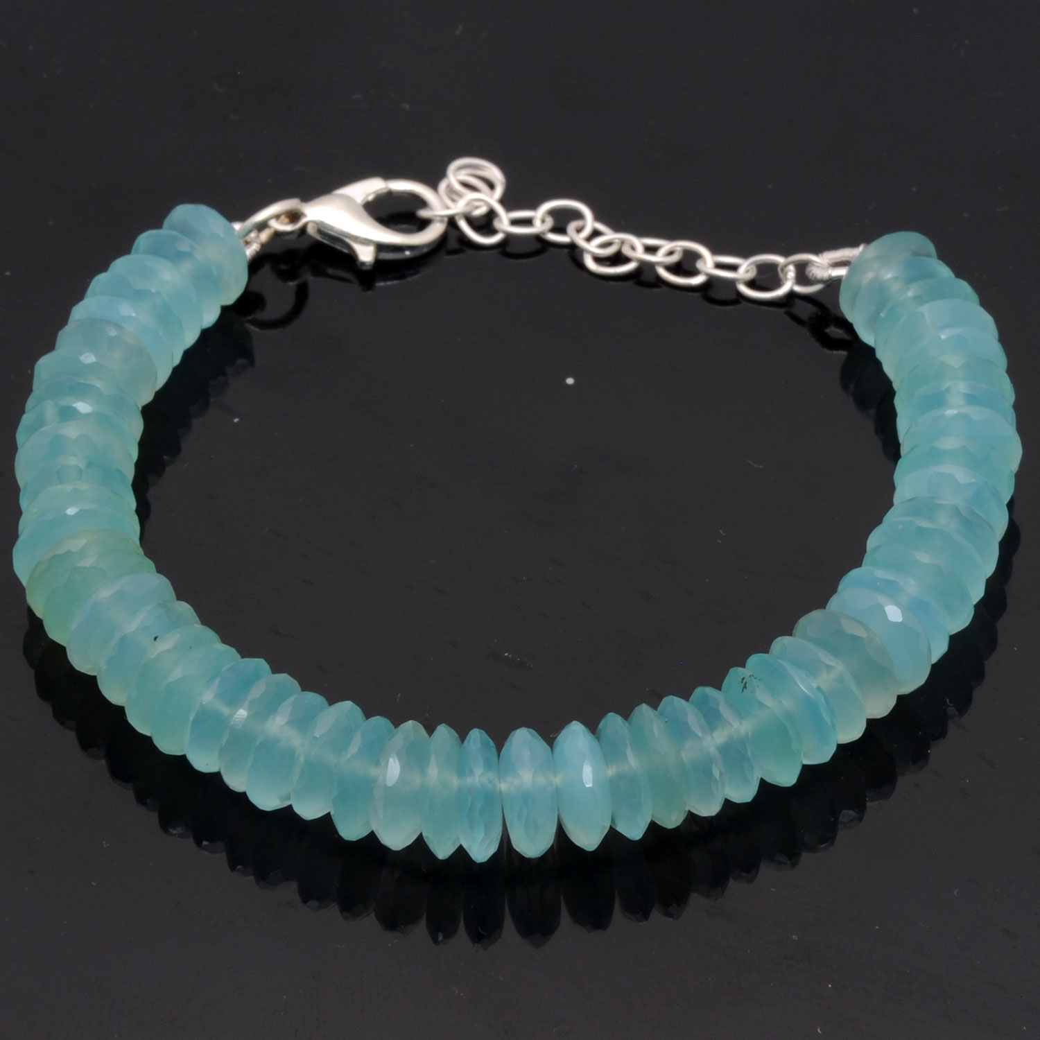 Gehna Jaipur Bracelet Of German Cutting Aquamarine Gemstone Faceted Beads For Girls & Women BS-1119
