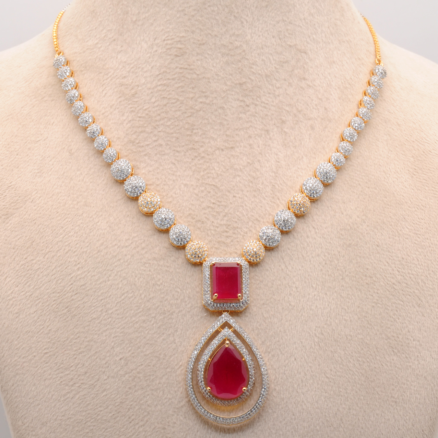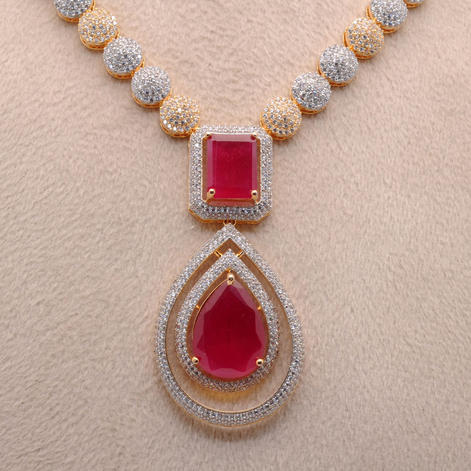 C.Z & Ruby Studded Party Wear Necklace & Earring Set
