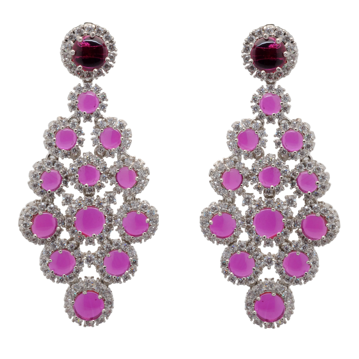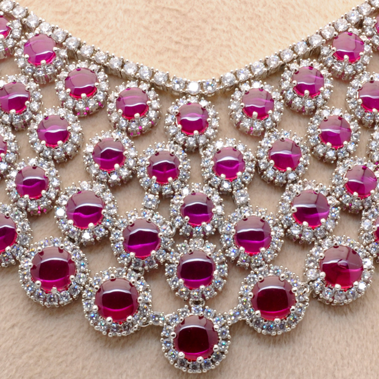 C. Zirconia & Ruby Color Stone Studded Beautiful Necklace & Earring Set