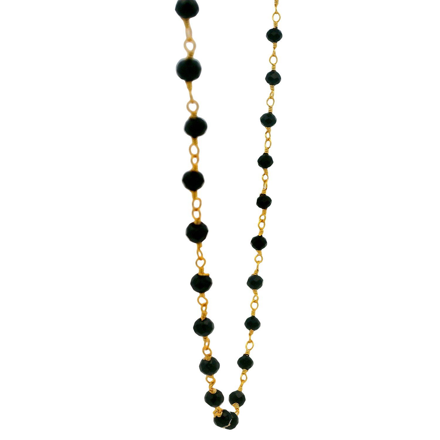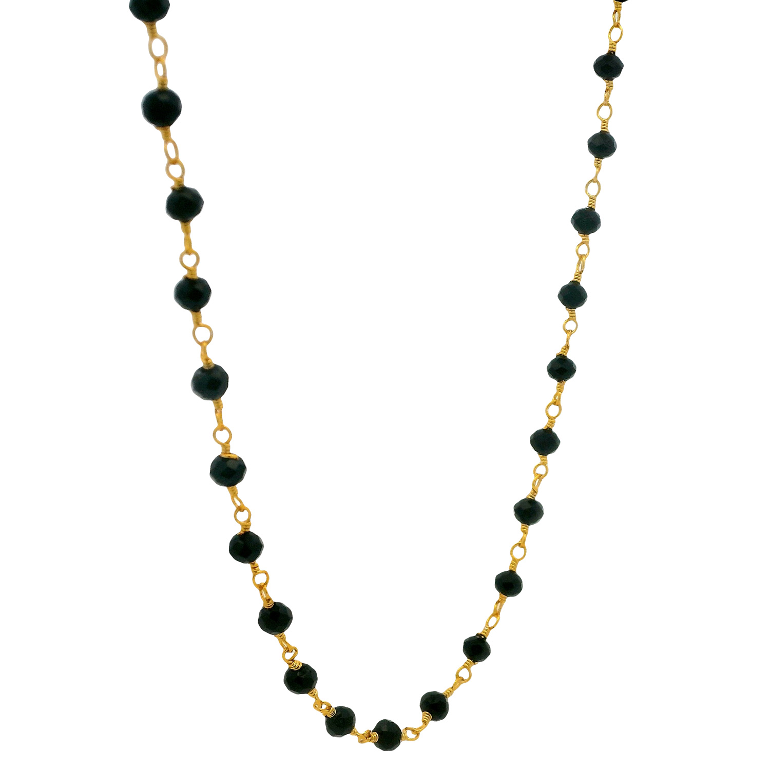 Gehna Jaipur Black Spinel Cubic Zirconia Beads Necklace (Gold Plated) embodies bold sophistication with its deep black shimmer, creating a timeless, luxurious statement.