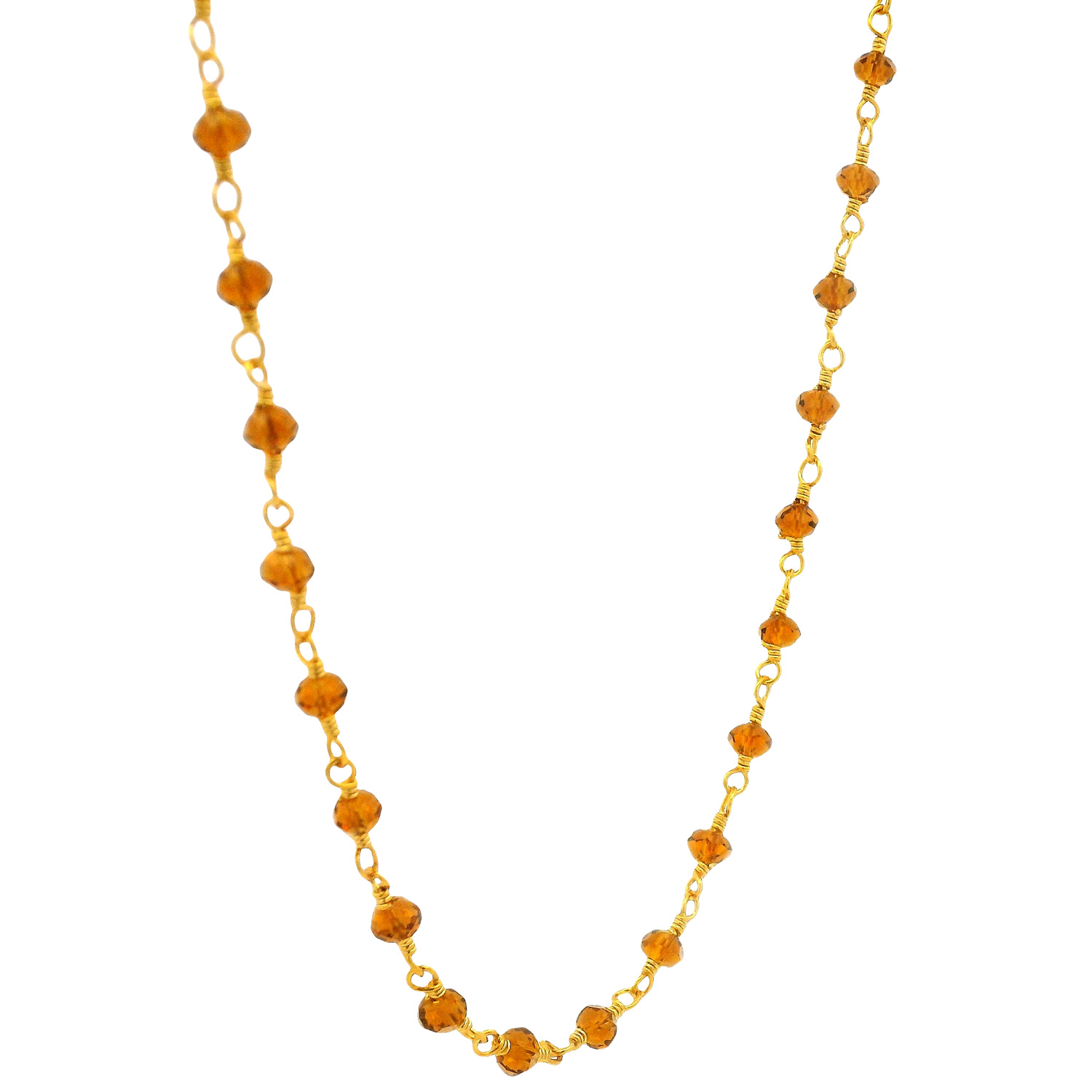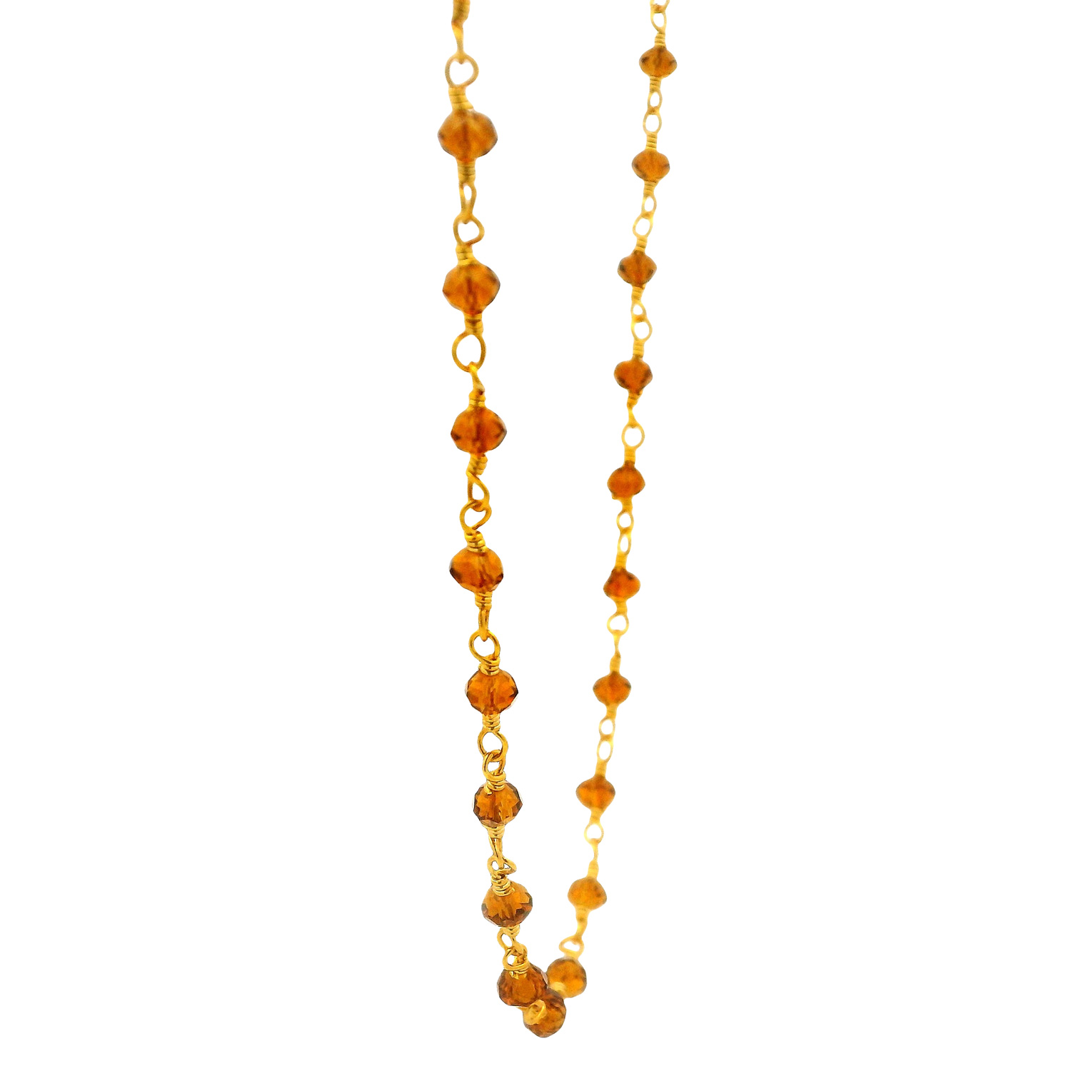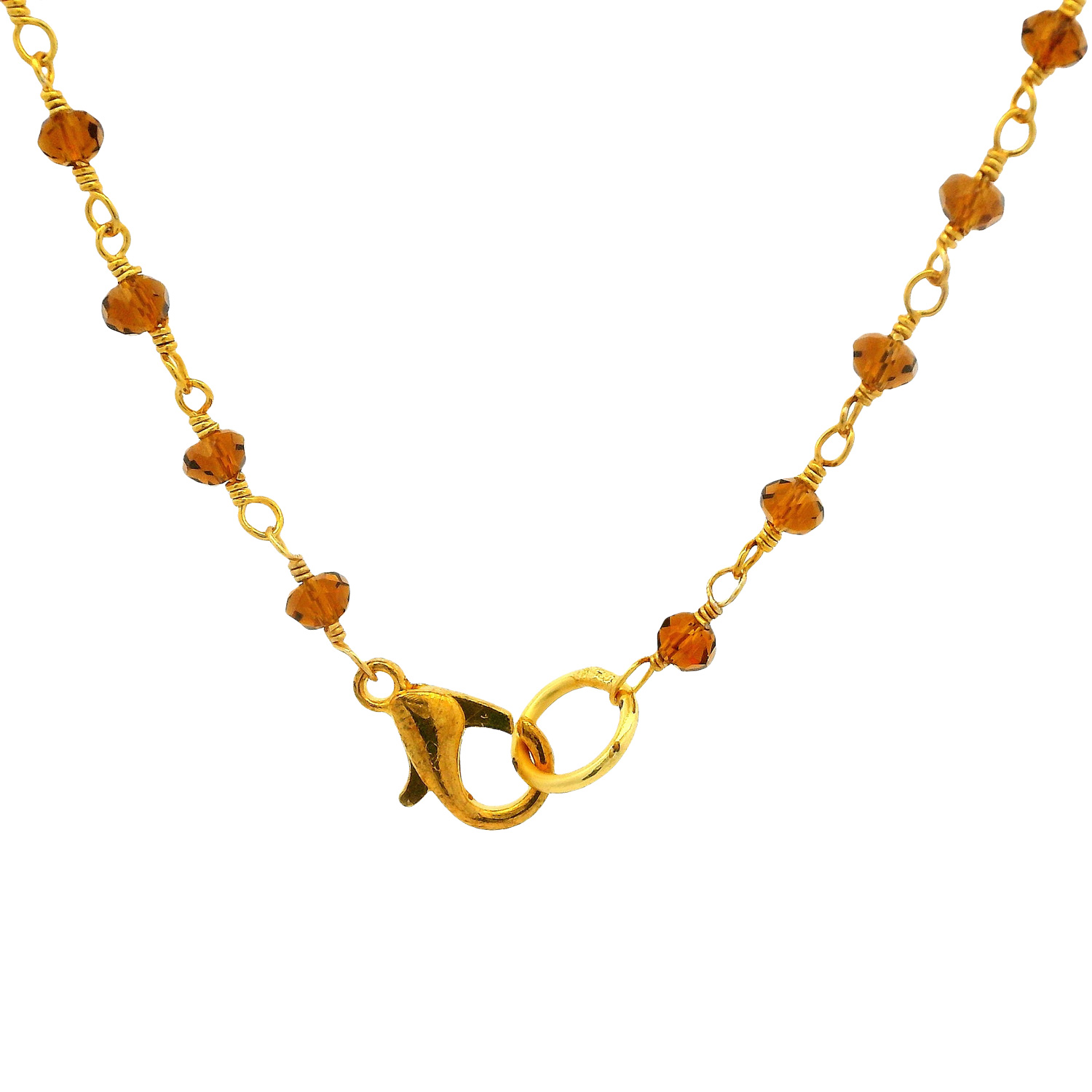 Gehna Jaipur Citrine Color Zirconia Beads Rosary Chain Yellow Gold Rhodium Plating For Girls & Women CC-1214