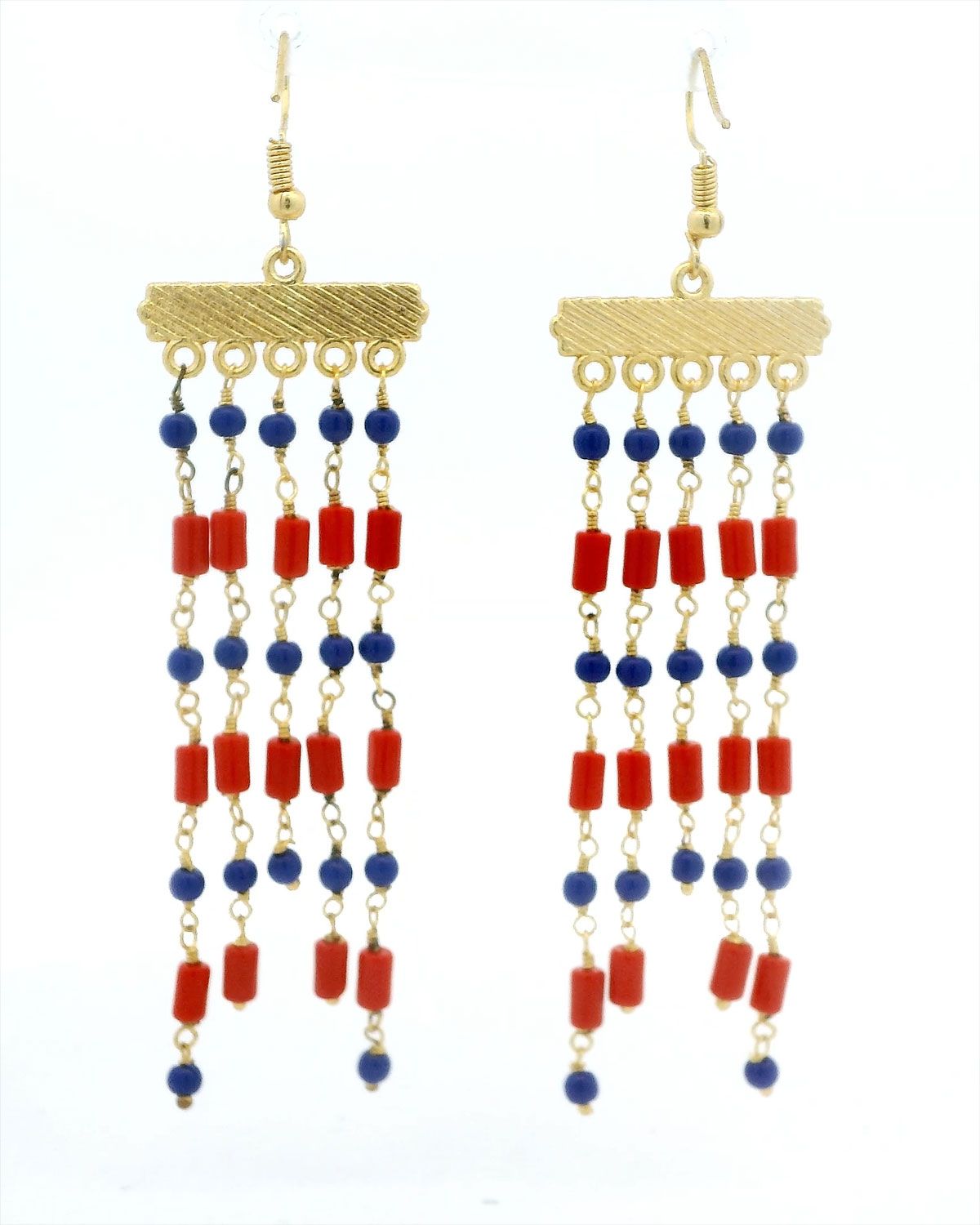 Gehna Jaipur Coral & Lapis Lazuli Gemstone Earrings crafted in .925 Sterling Silver showcase a vibrant mix of red and deep blue tones. Perfect for girls and women, these earrings add a bold yet elegant touch, making them ideal for festive looks, casual charm, or statement styling.