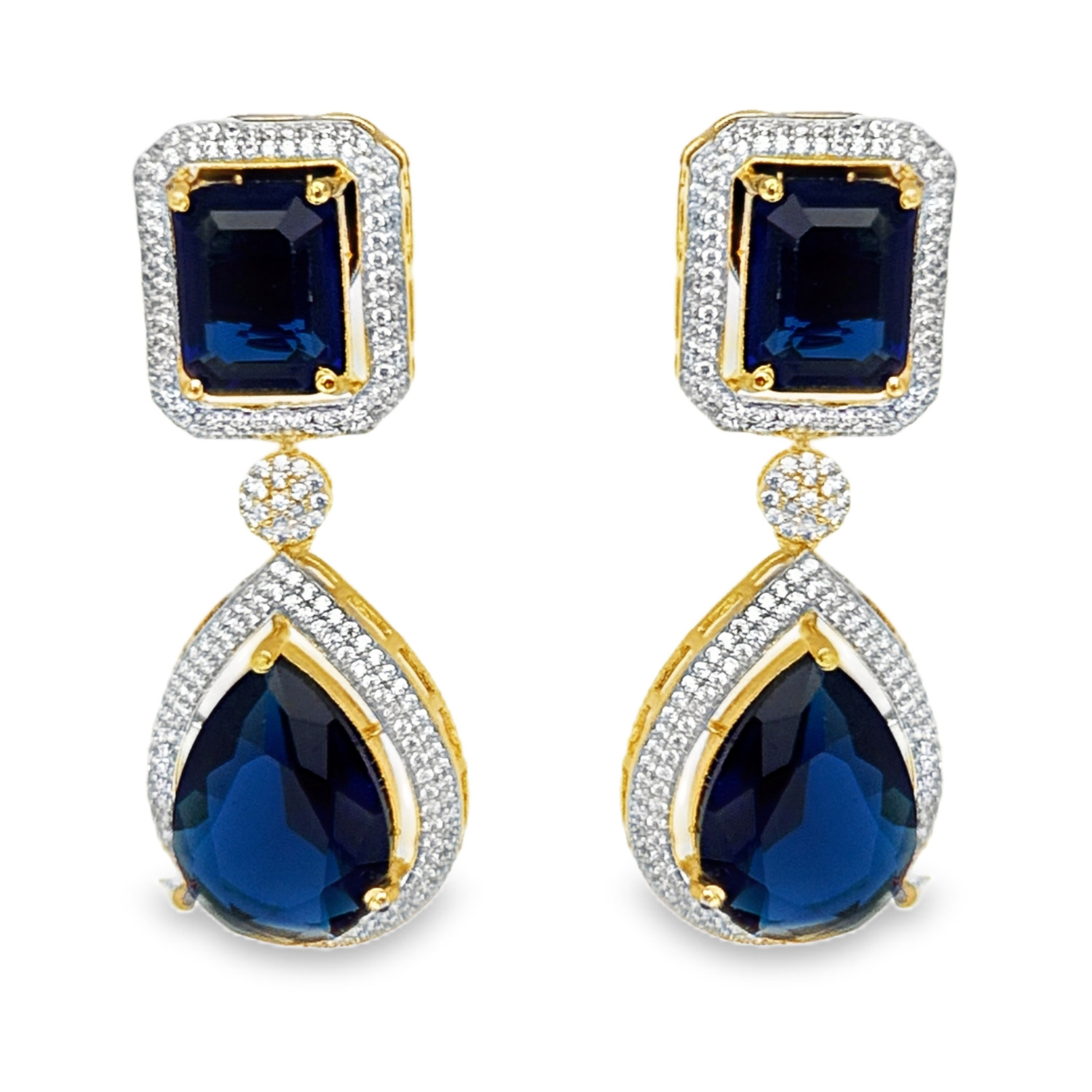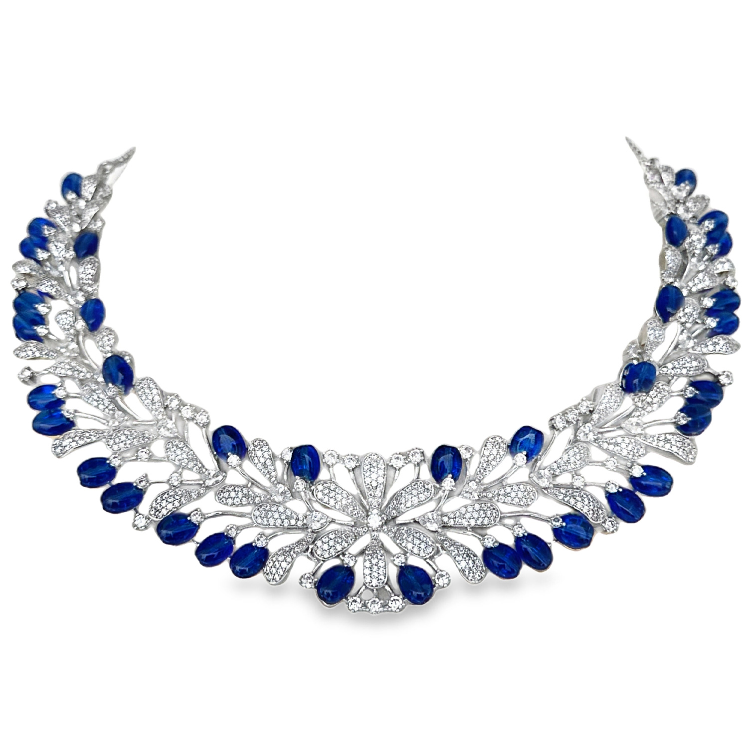Cubic Zirconia & Blue Sapphire Color Stone Studded Necklace & Earring Set