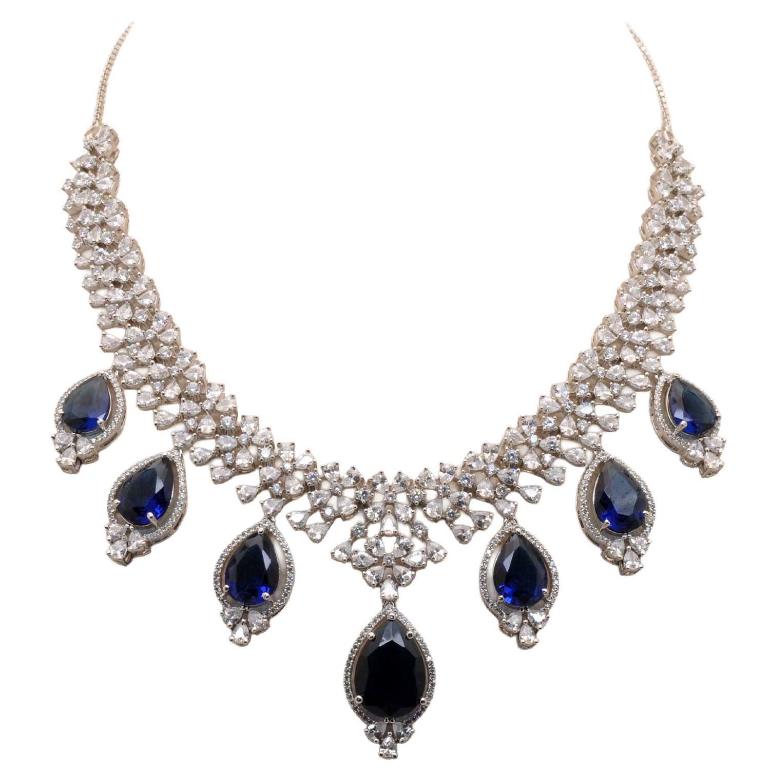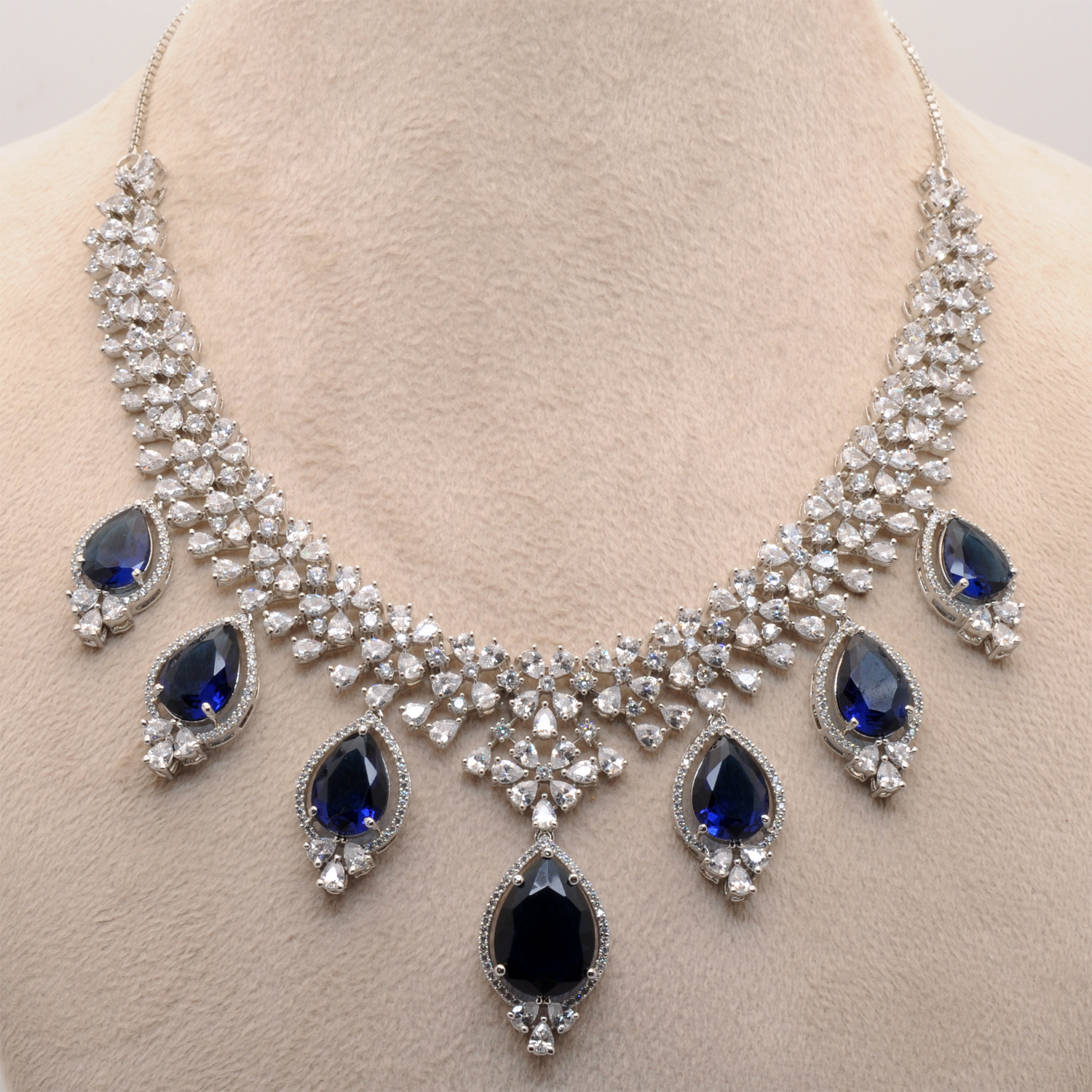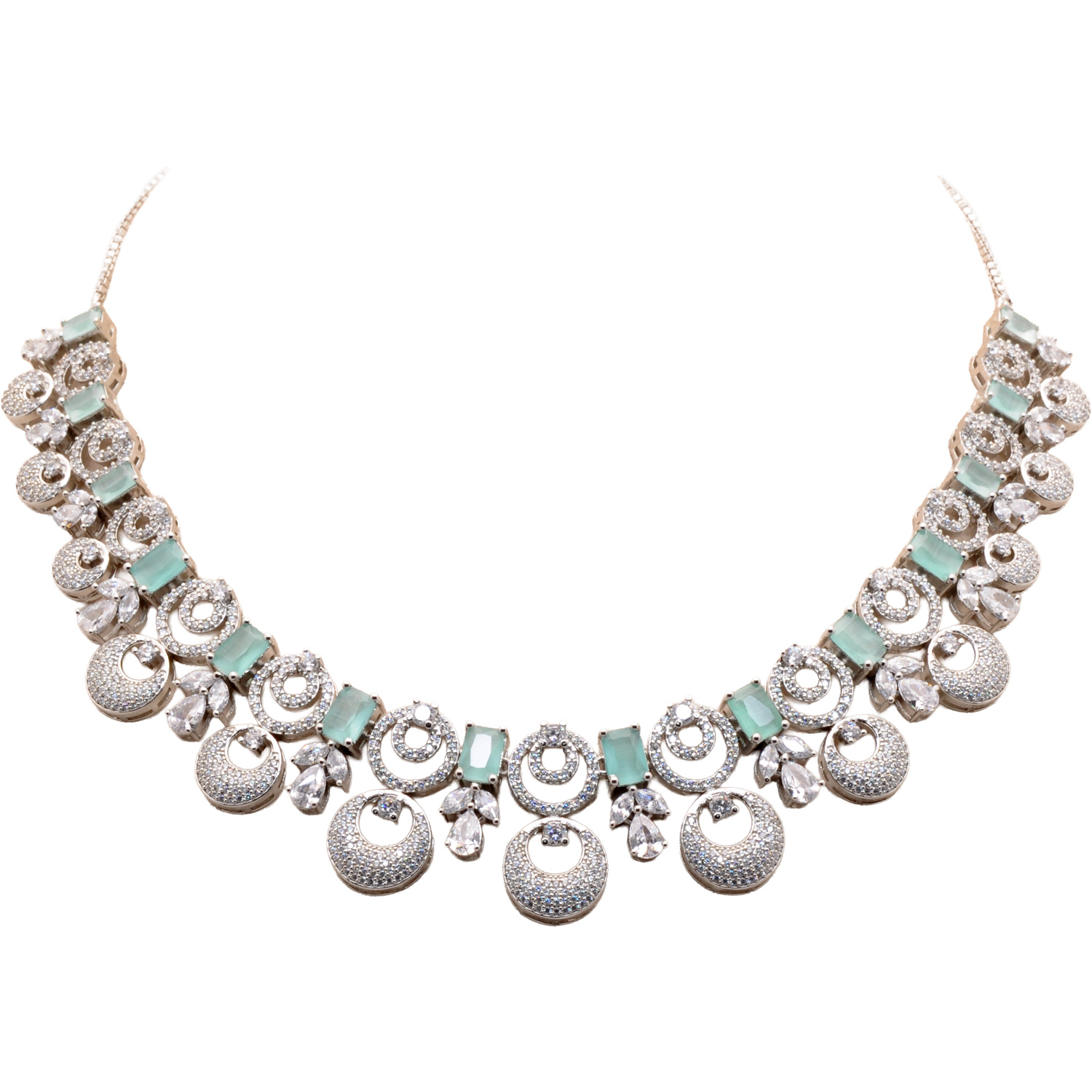 Cubic Zirconia & Kyanite Color Stone Studded Necklace & Earring Set