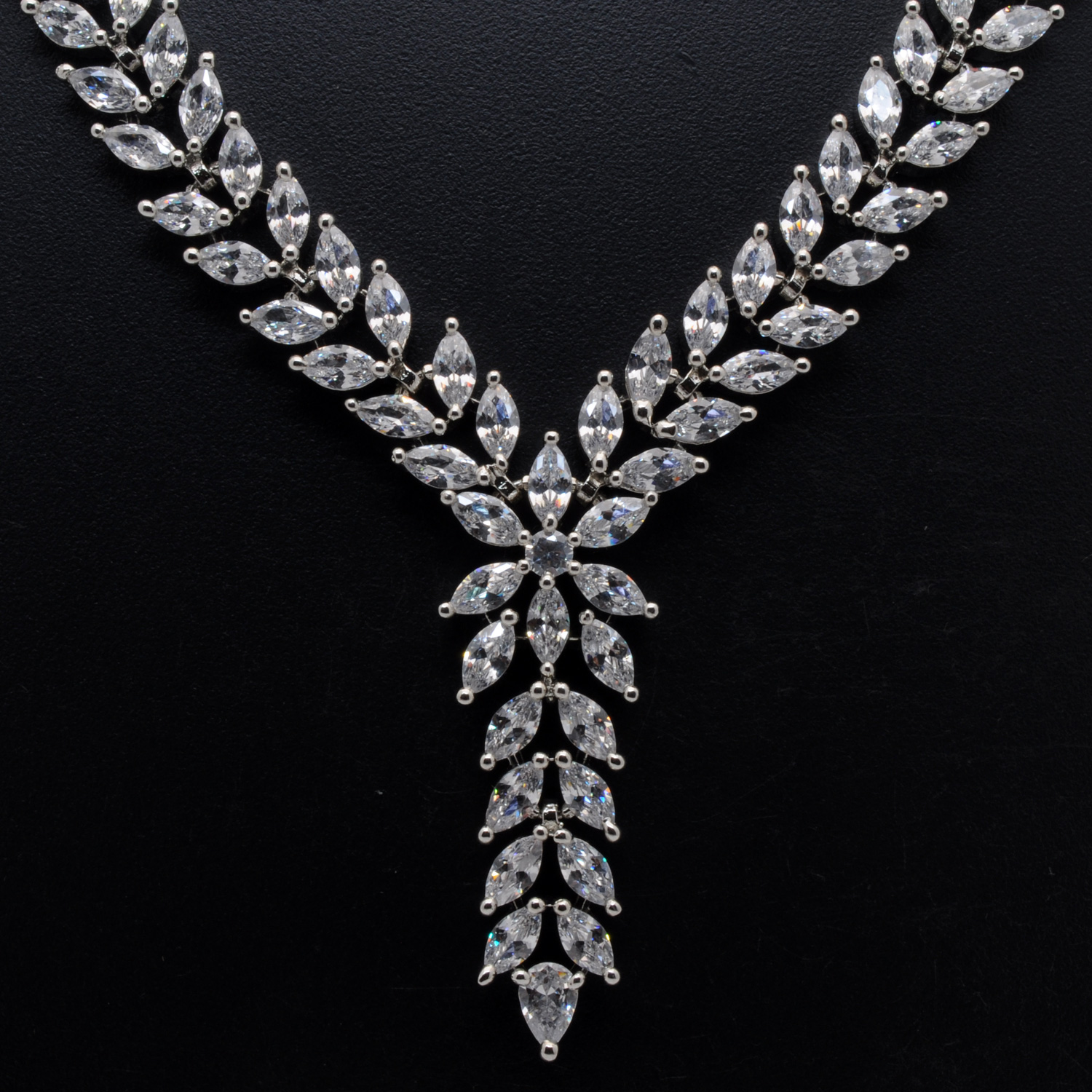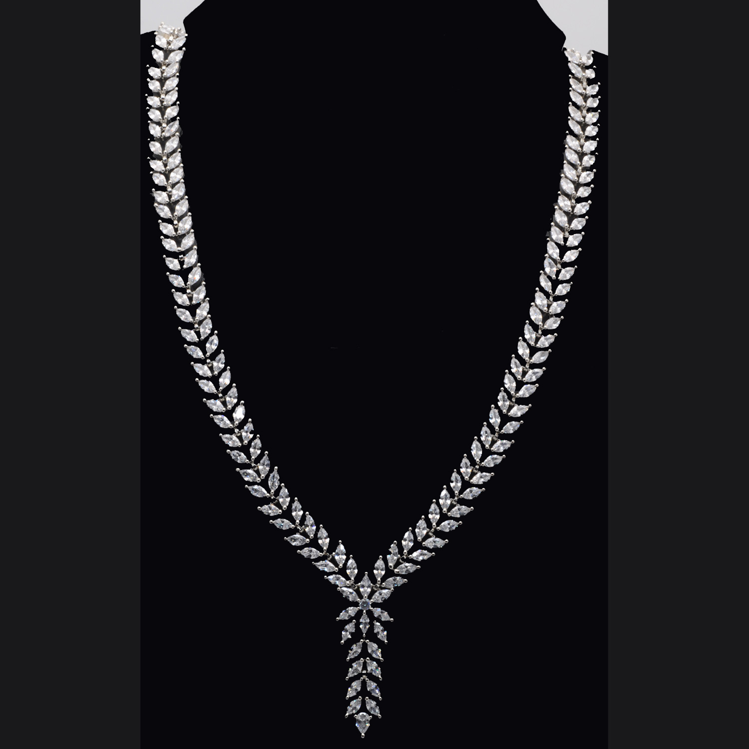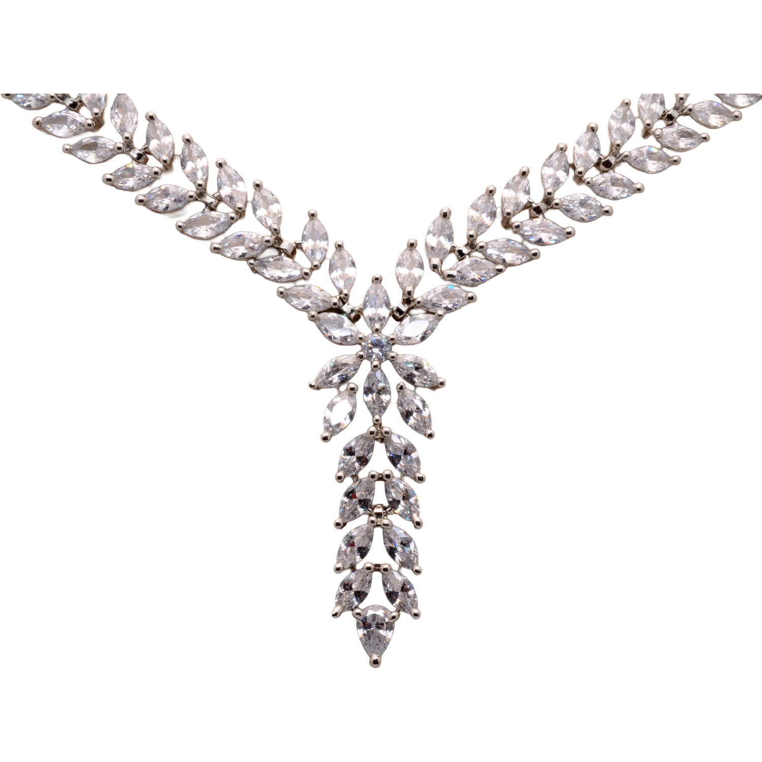 Cubic Zirconia Marquise Studded Party Wear Necklace & Earring Set