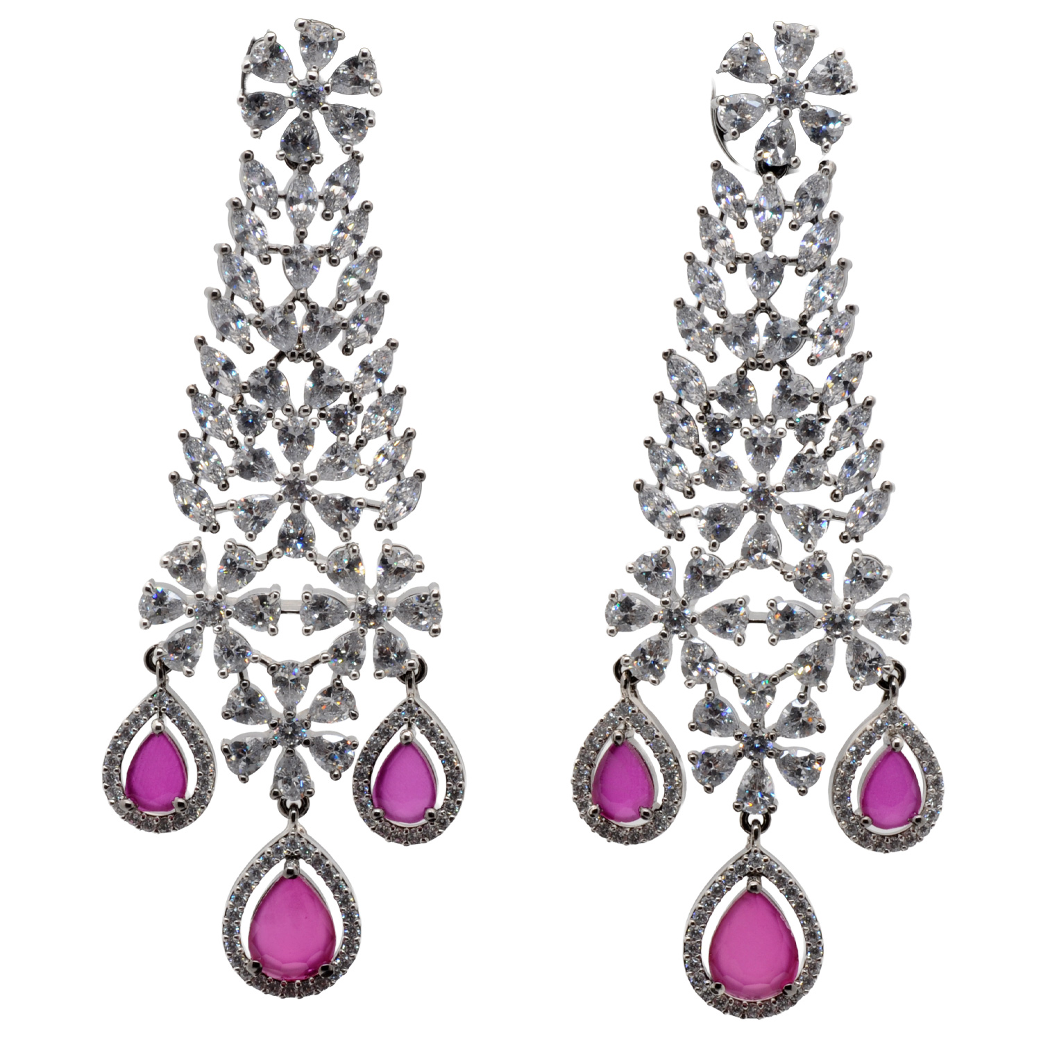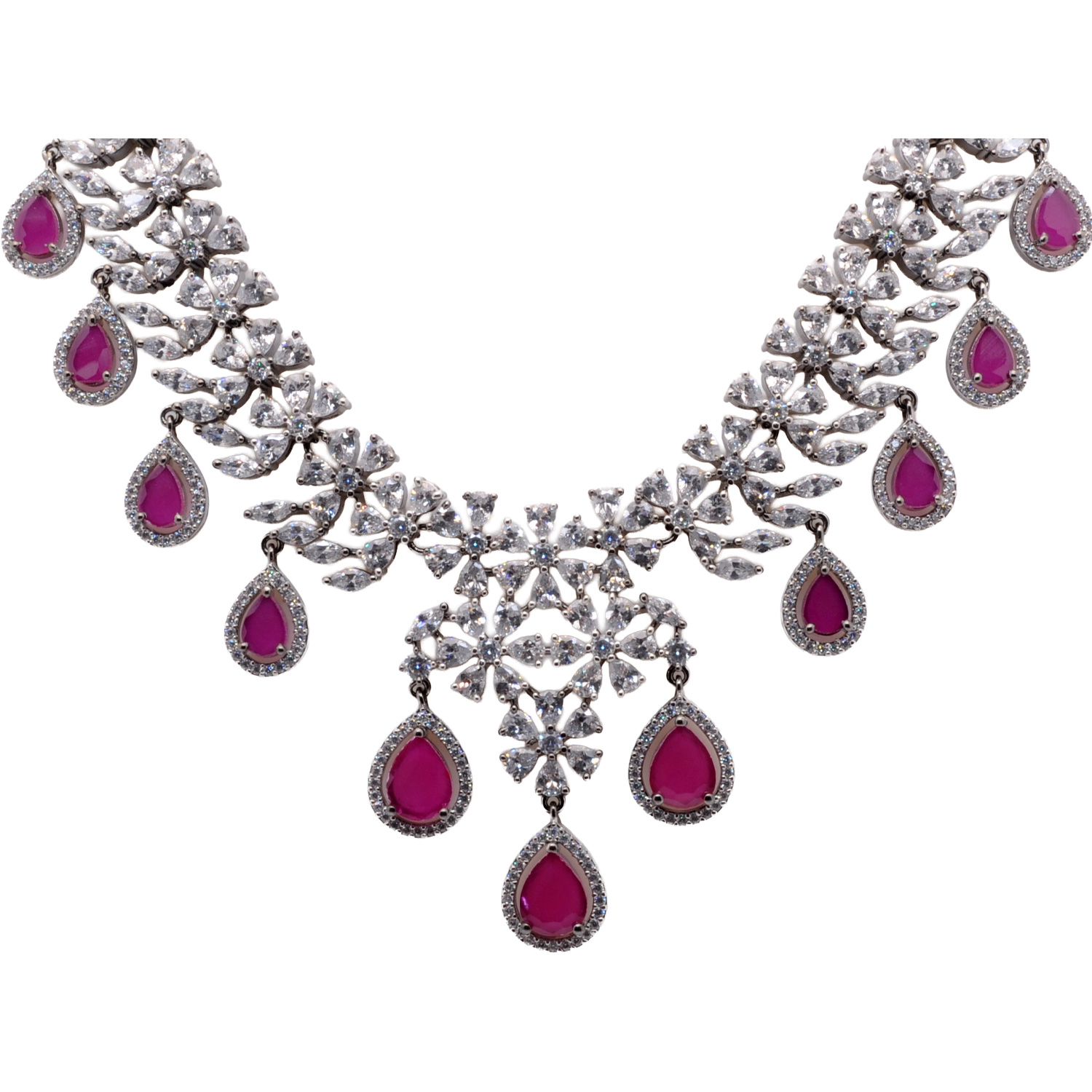Cubic Zirconia & Ruby Color Stone Pear Studded Necklace & Earring Set