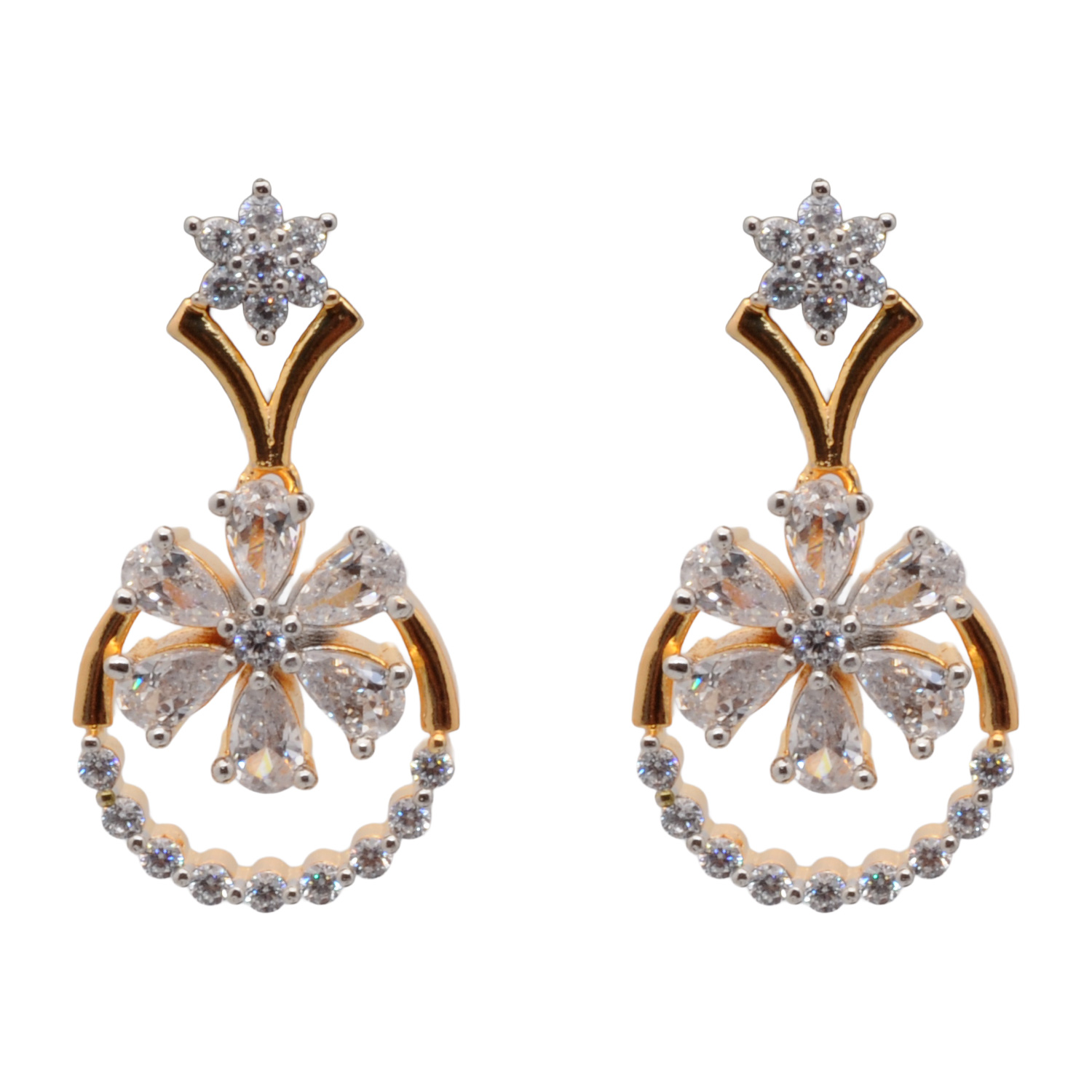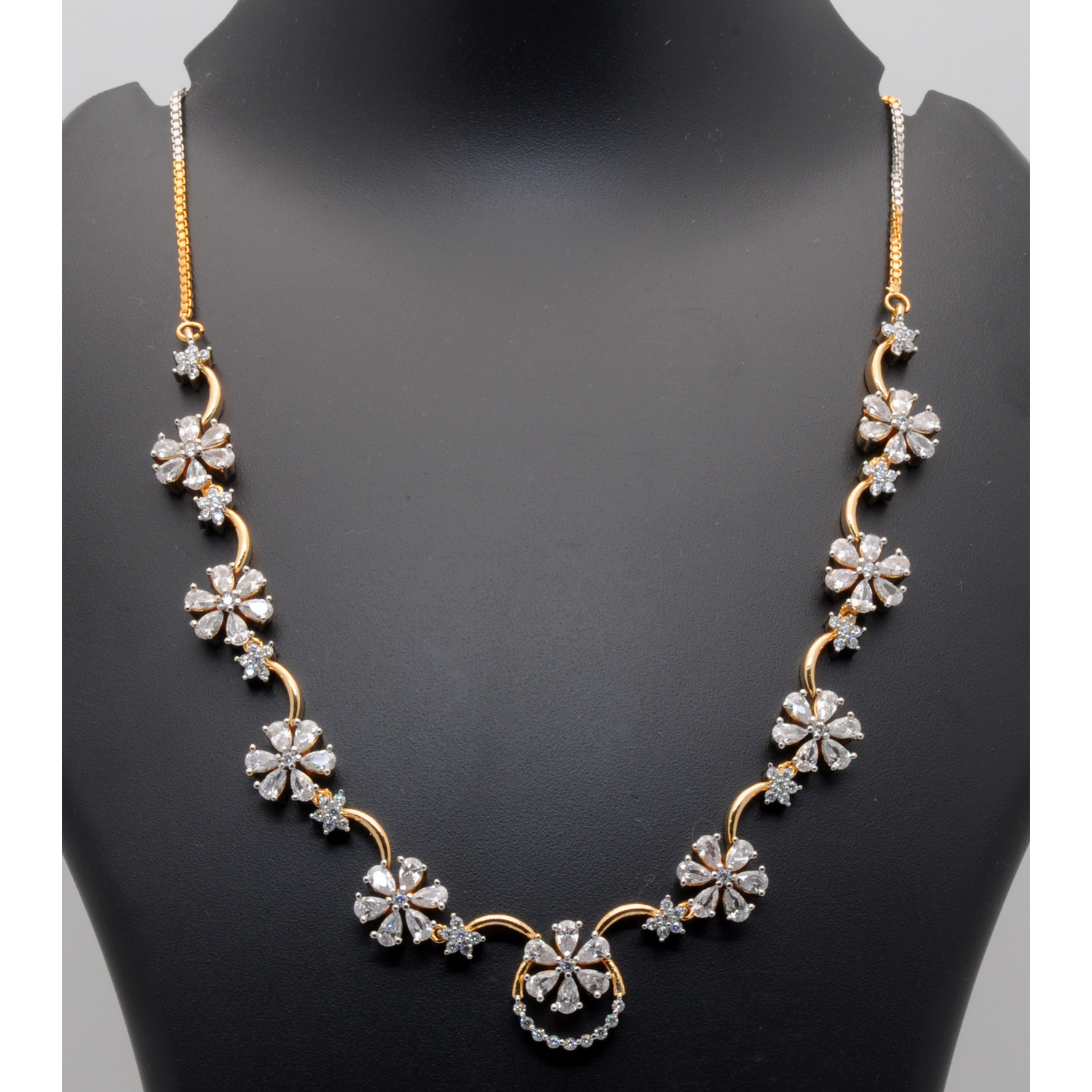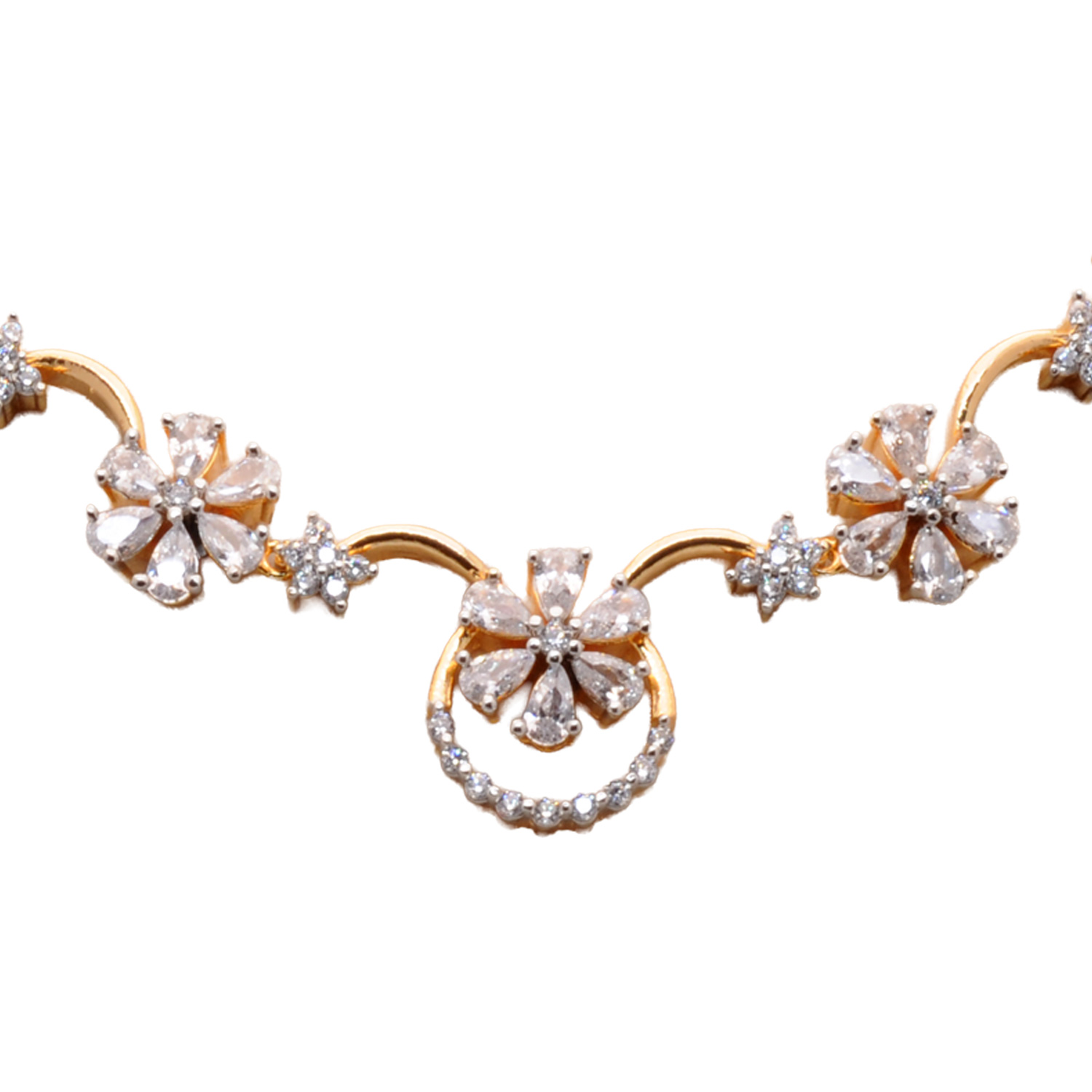 Cubic Zirconia Studded Floral Theme Party Wear Necklace & Earring