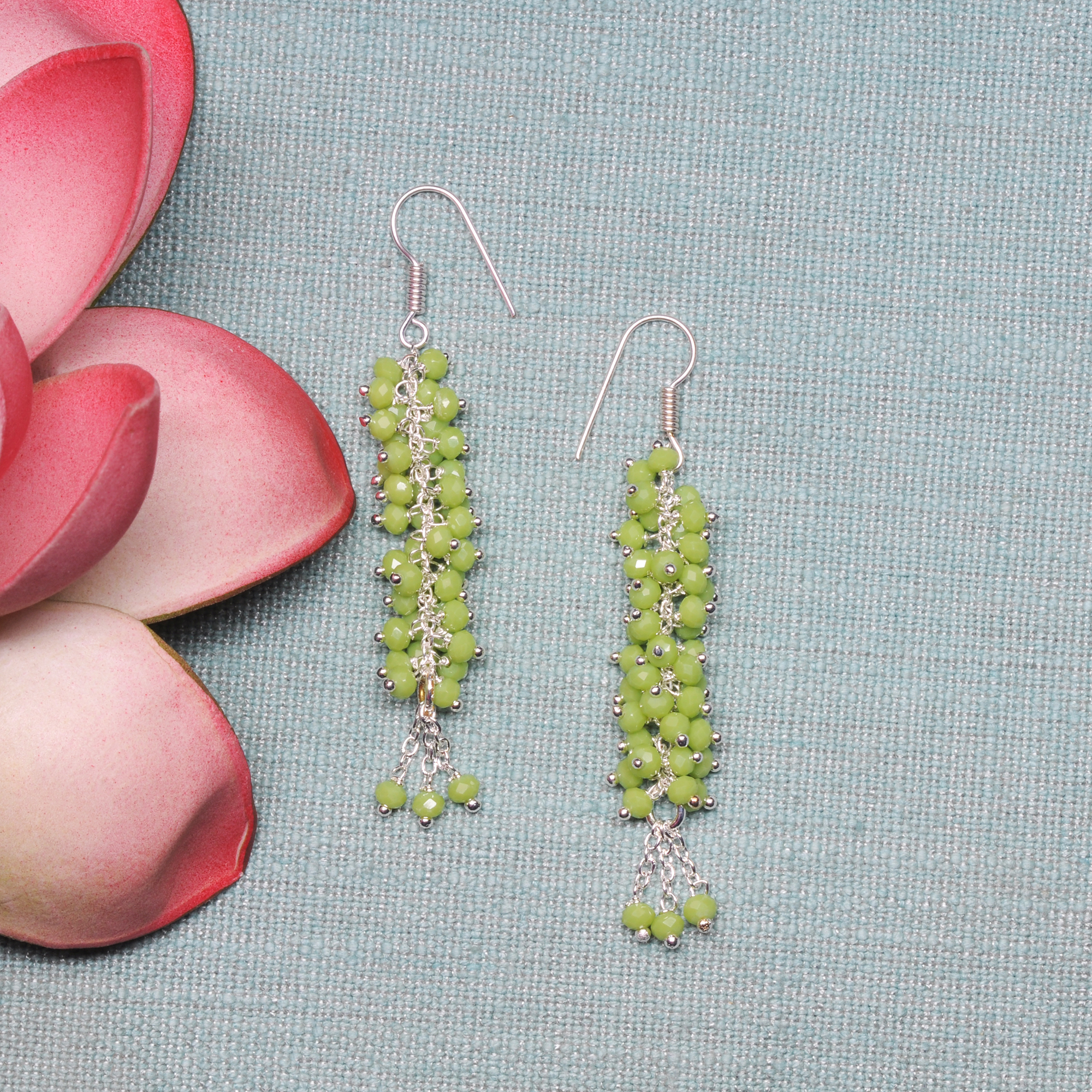 Gehna Jaipur Elegant Green Beaded Cascade Earrings With Silver-Tone Chain For Girls & Women CE-1086