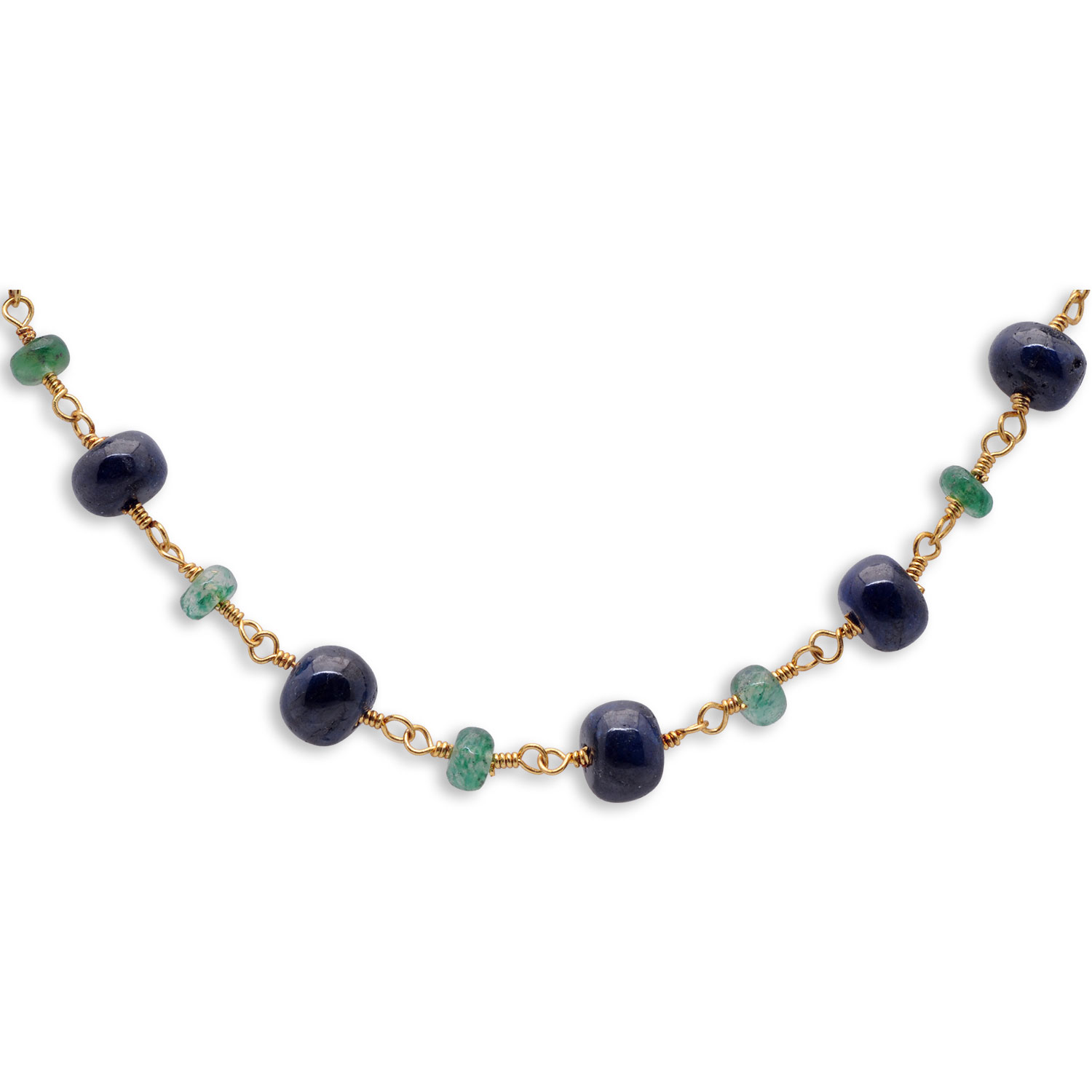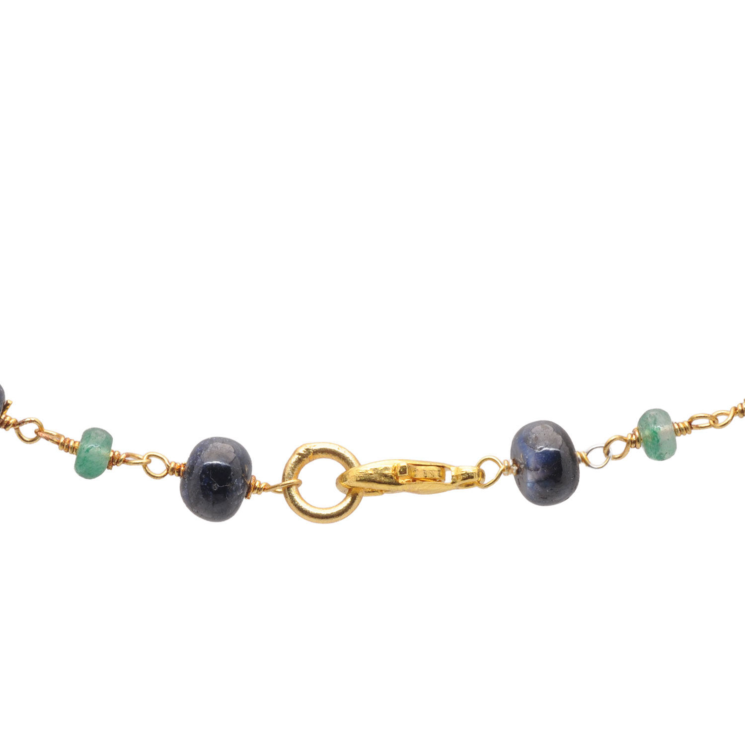 Gehna Jaipur Emerald & Blue Sapphire Gemstone Bead Chain Knotted In Gold Plated For Girls & Women CP-1094