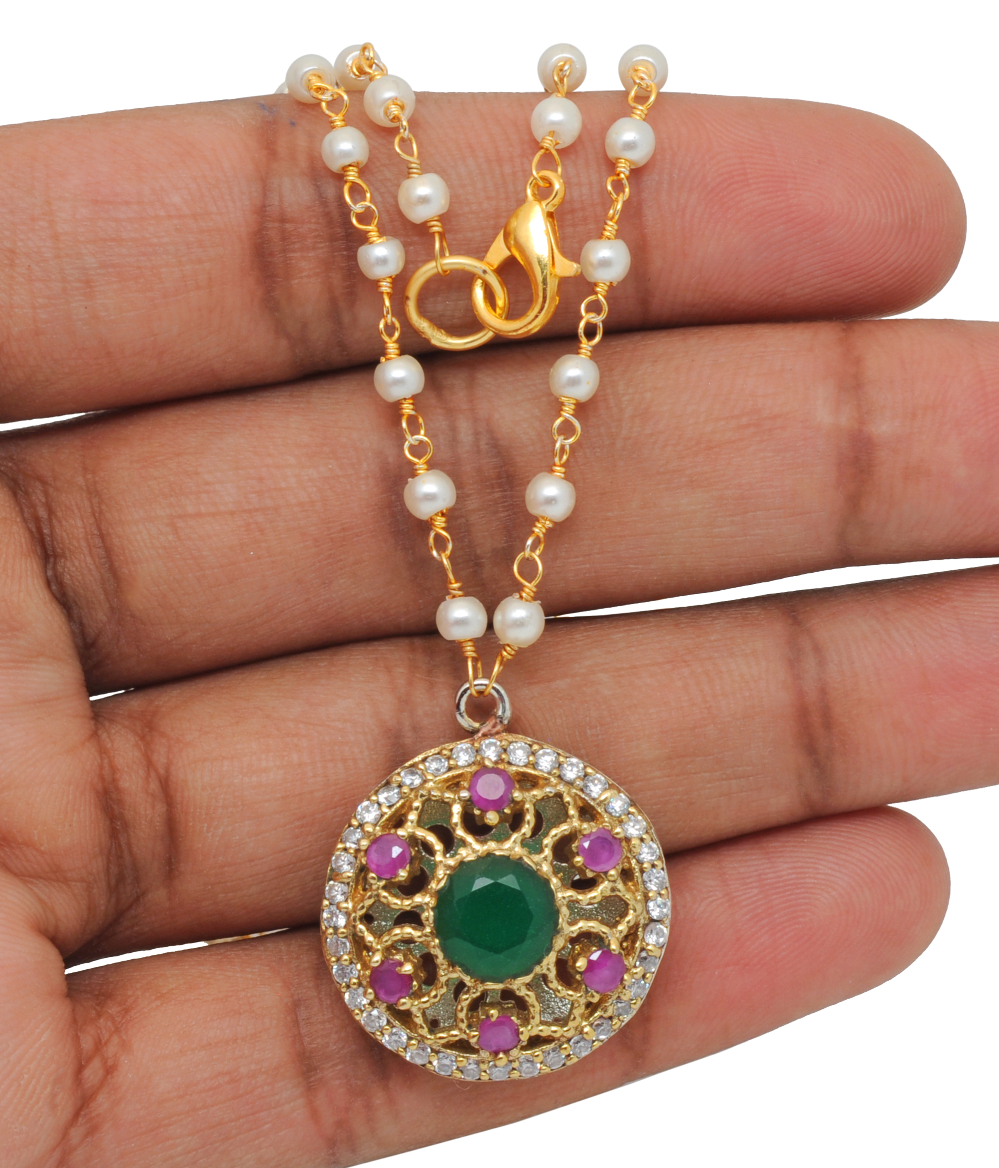 Gehna Jaipur Emerald & Multicolor Gemstone Beaded Necklace In Silver For Unisex