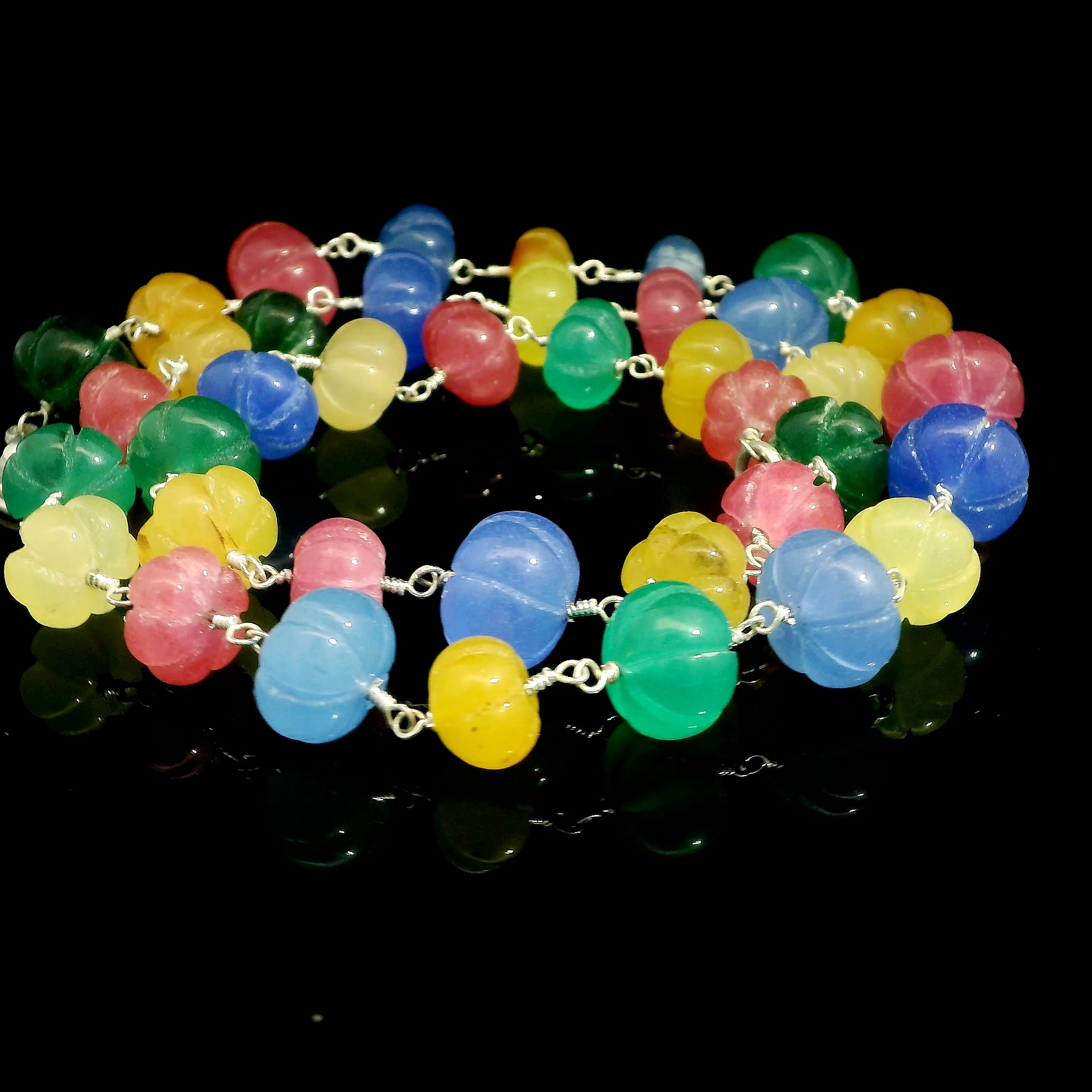 Gehna Jaipur Emerald,Ruby,Sapphire Gemstone Pumpkin Shape Bead Chain Knotted In Silver For Girls & Women CP-1087