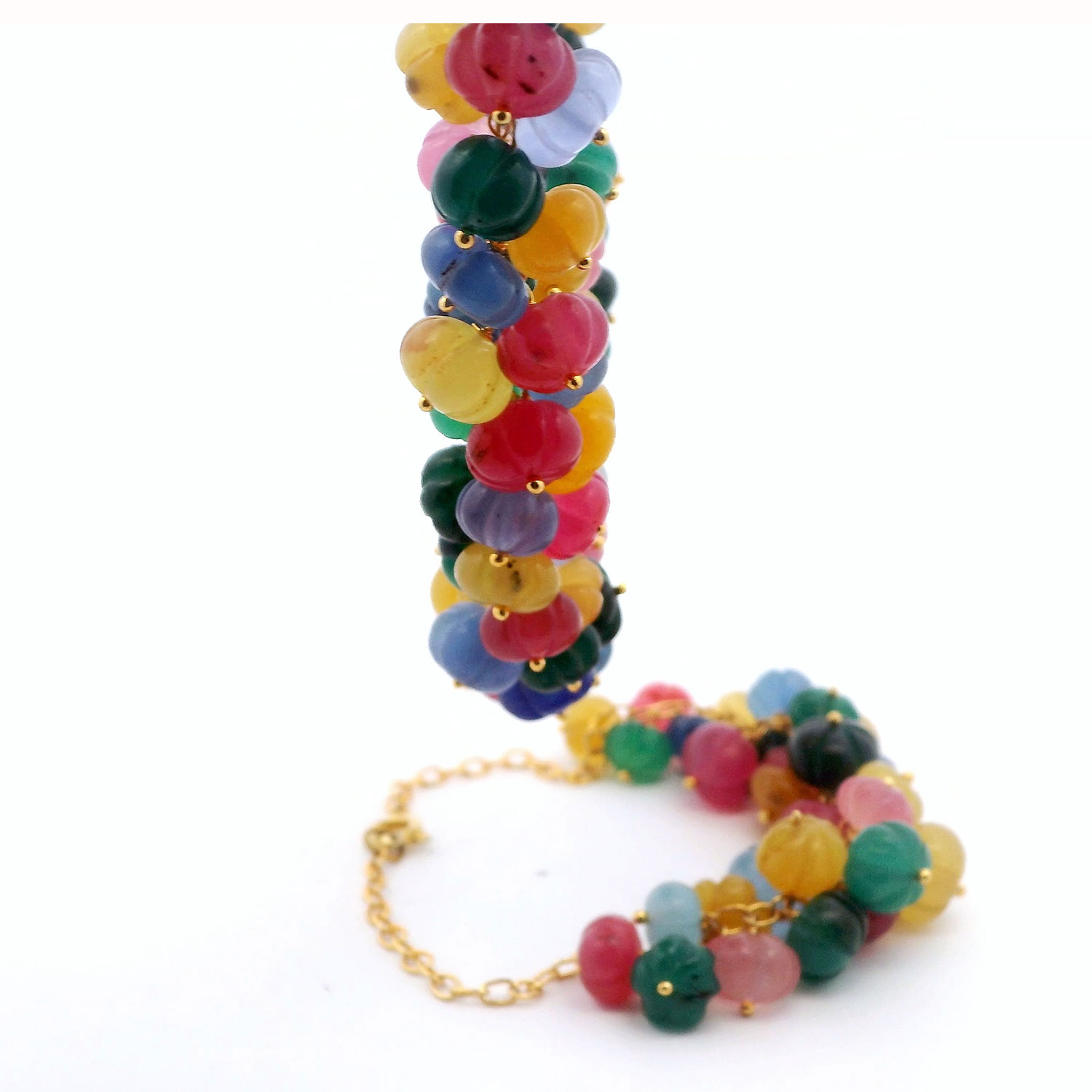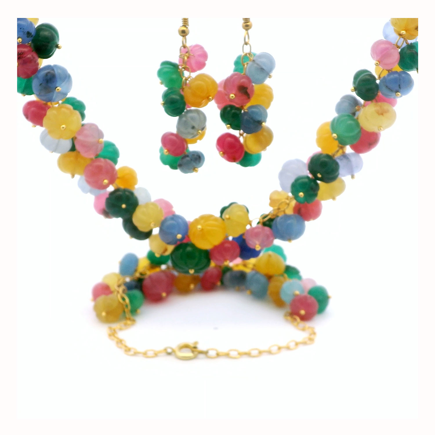 Gehna Jaipur Emerald,Ruby,Sapphire Gemstone Pumpkin Shape Bead Necklace Set In Gold Plated For Girls & Women CP-1089