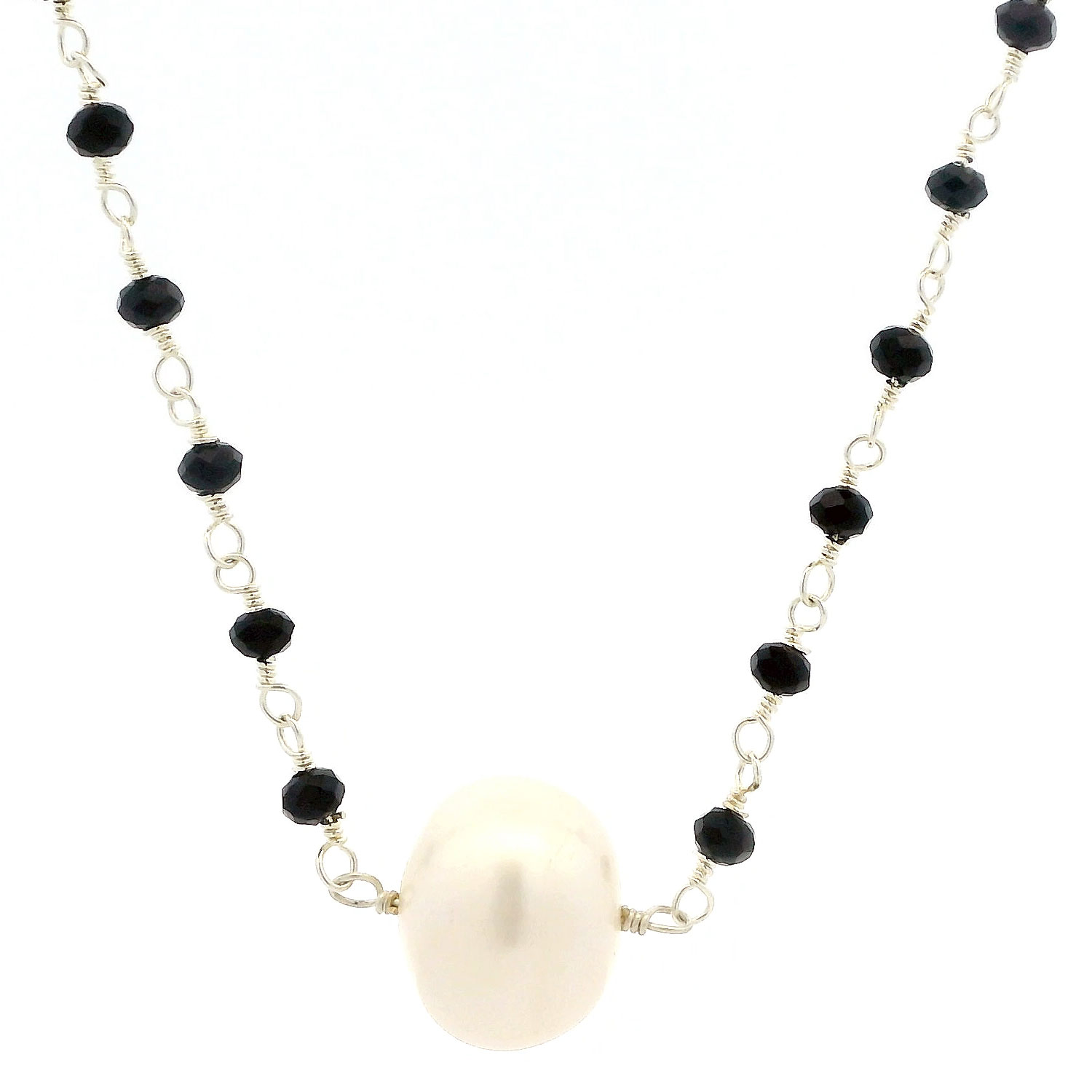 Gehna Jaipur Fresh Water Pearl & Black Spinel Gemstone Beads Chain For Girls & Women CM-1170