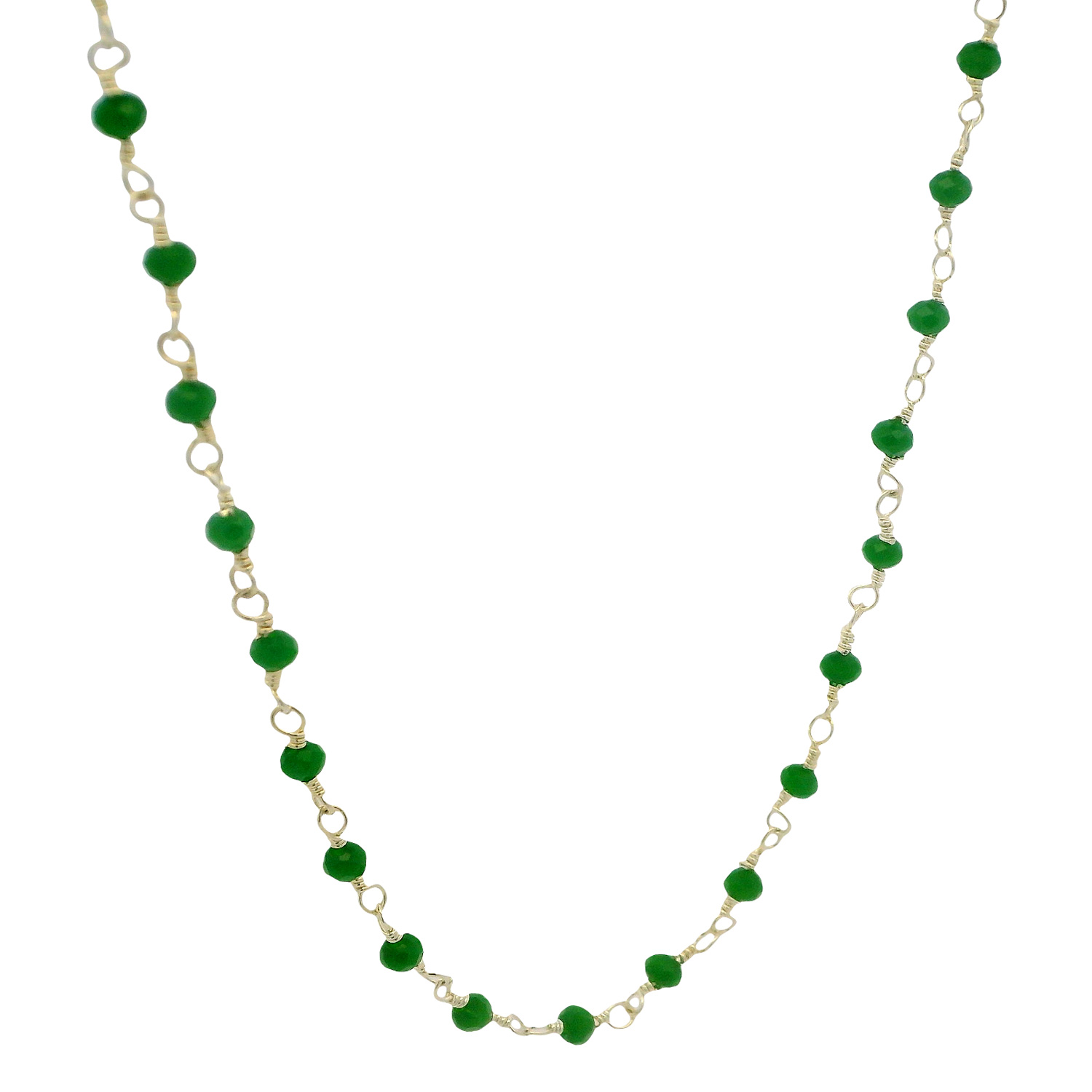 Gehna Jaipur Green Jade Color Cubic Zirconia Beads Necklace (Silver) For Girls & Women CC-1034