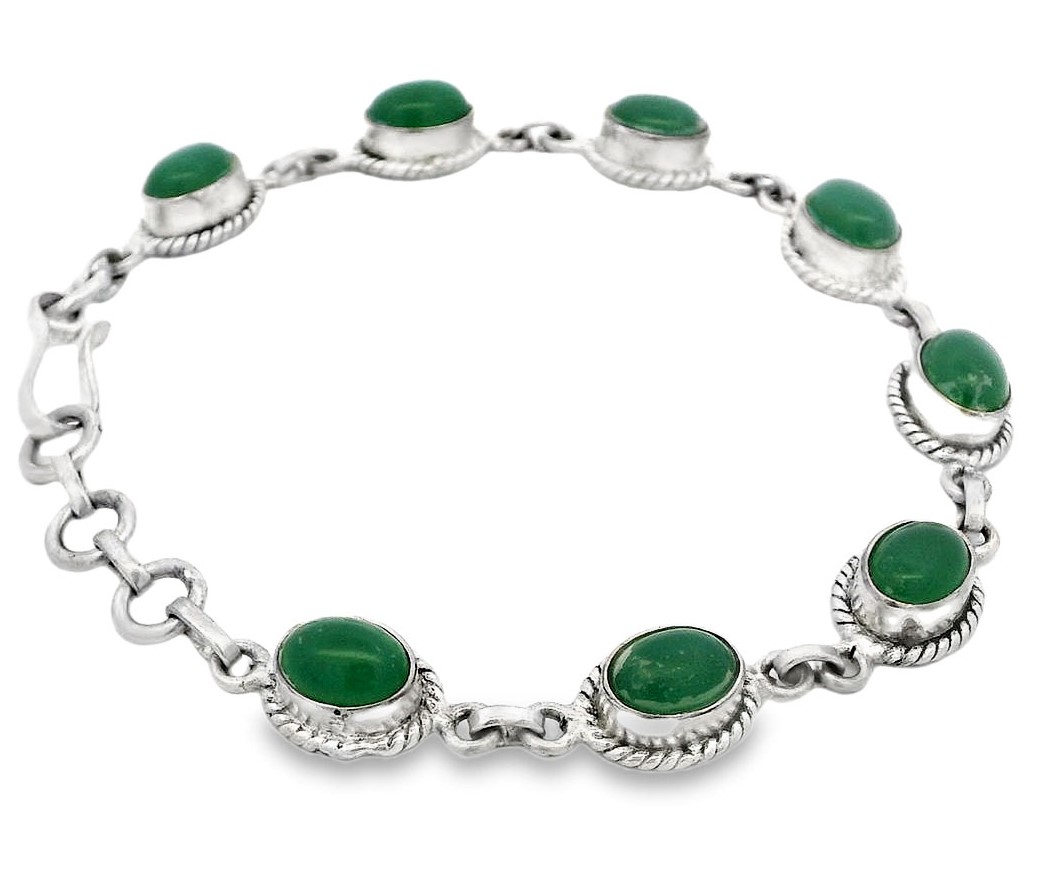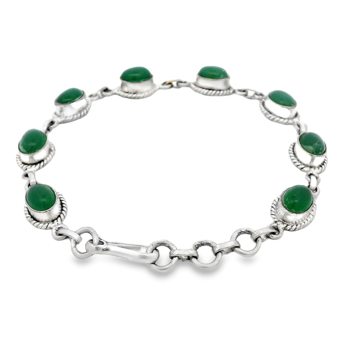 Gehna Jaipur Green Jade Gemstone Studded 925 Sterling Silver Bracelet For Girls & Women SB-1063
