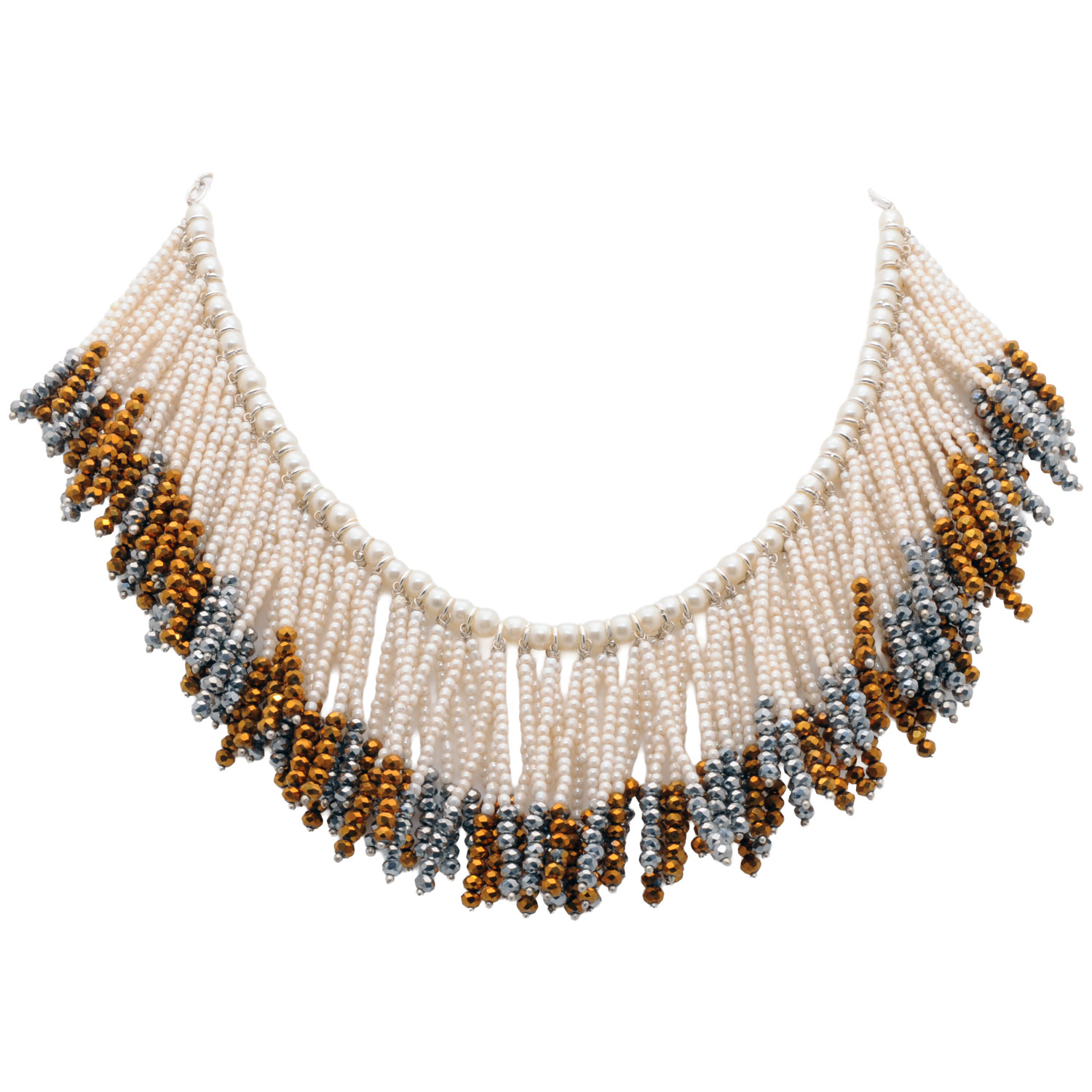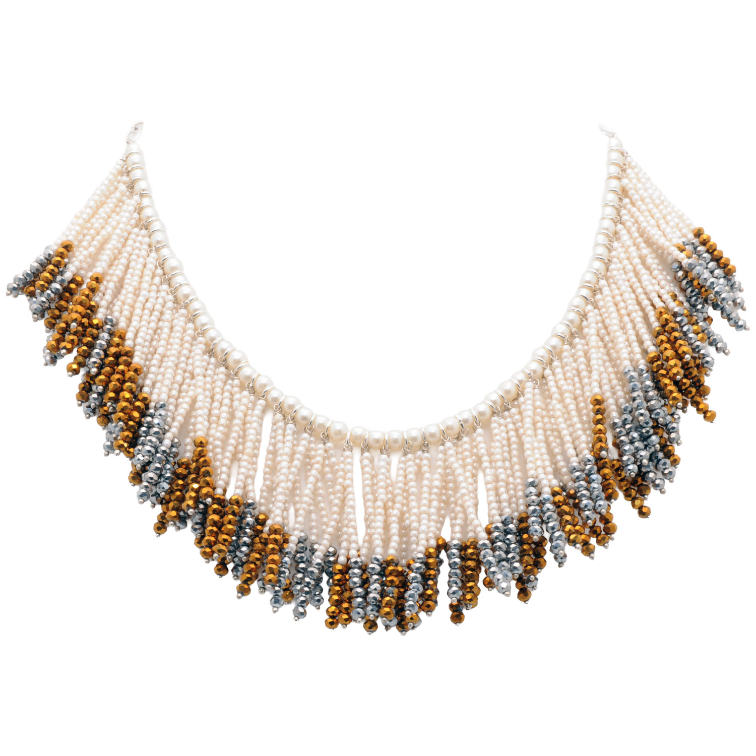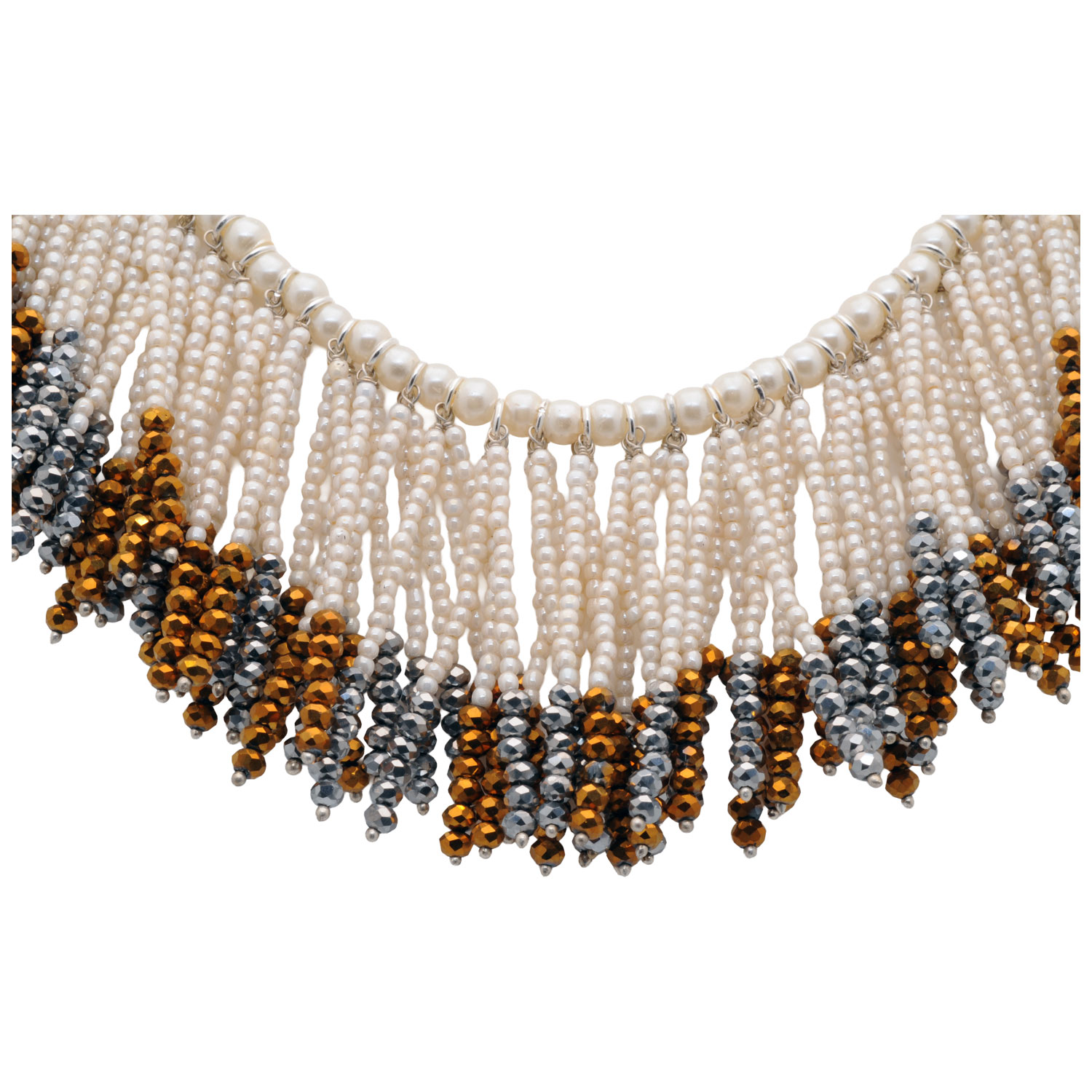 A stunning blend of silver and golden pyrite color faceted beads with classic pearls, this handmade necklace exudes elegance and charm. Perfect for festive wear, celebrations, or statement styling, it complements both ethnic and fusion looks beautifully.